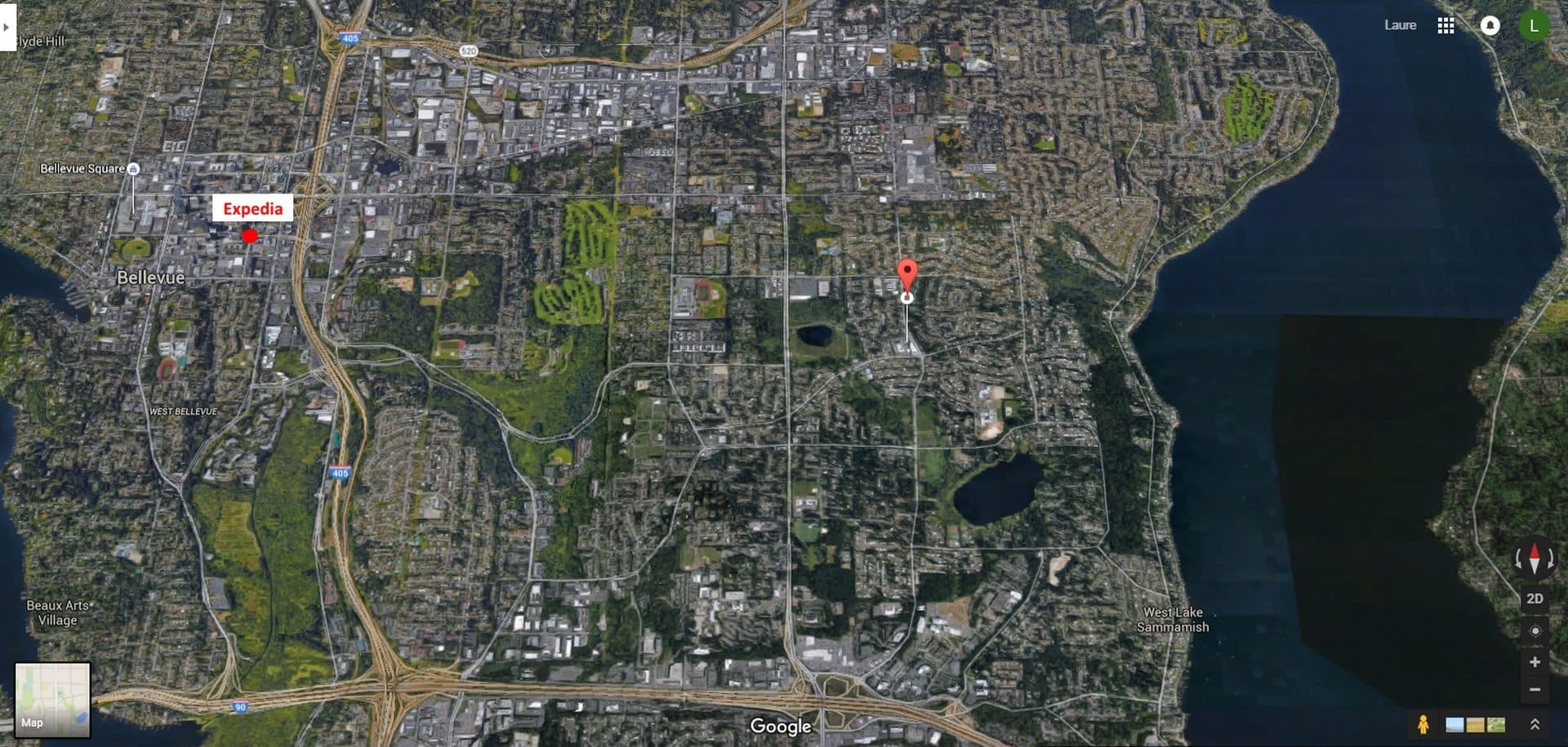 Nous, nous habitons a Bellevue, dans le quartier de Lake Hills plus précisément. Un quartier résidentiel ou nous jouissons des bénéfices de la ville avec 2 centres commerciaux a moins de 20 minutes a pieds, la bibliothèque a 2 minutes, le bus direct pour aller au travail en 30 minutes; allies aux atouts de la banlieue avec de multiples chemins de randonnées / vélos qui passent pas très loin !
