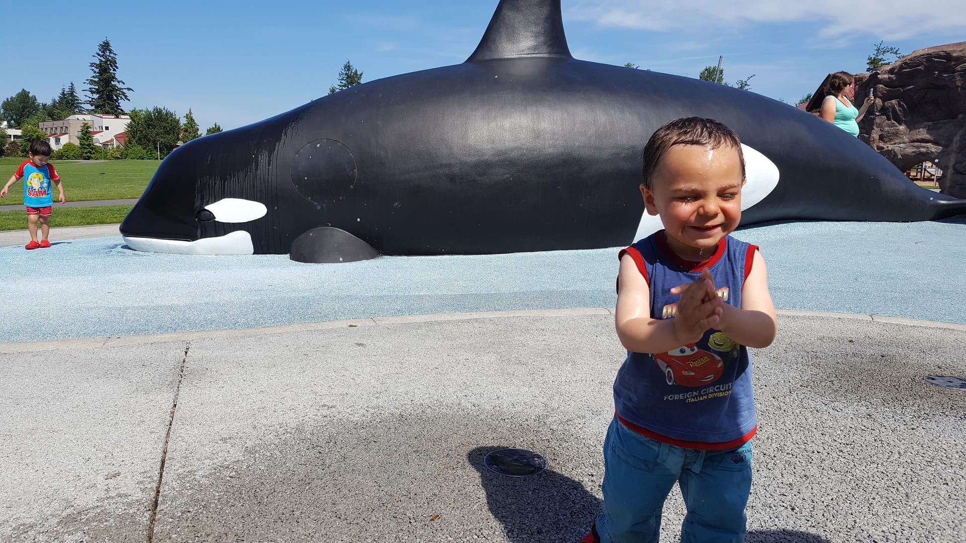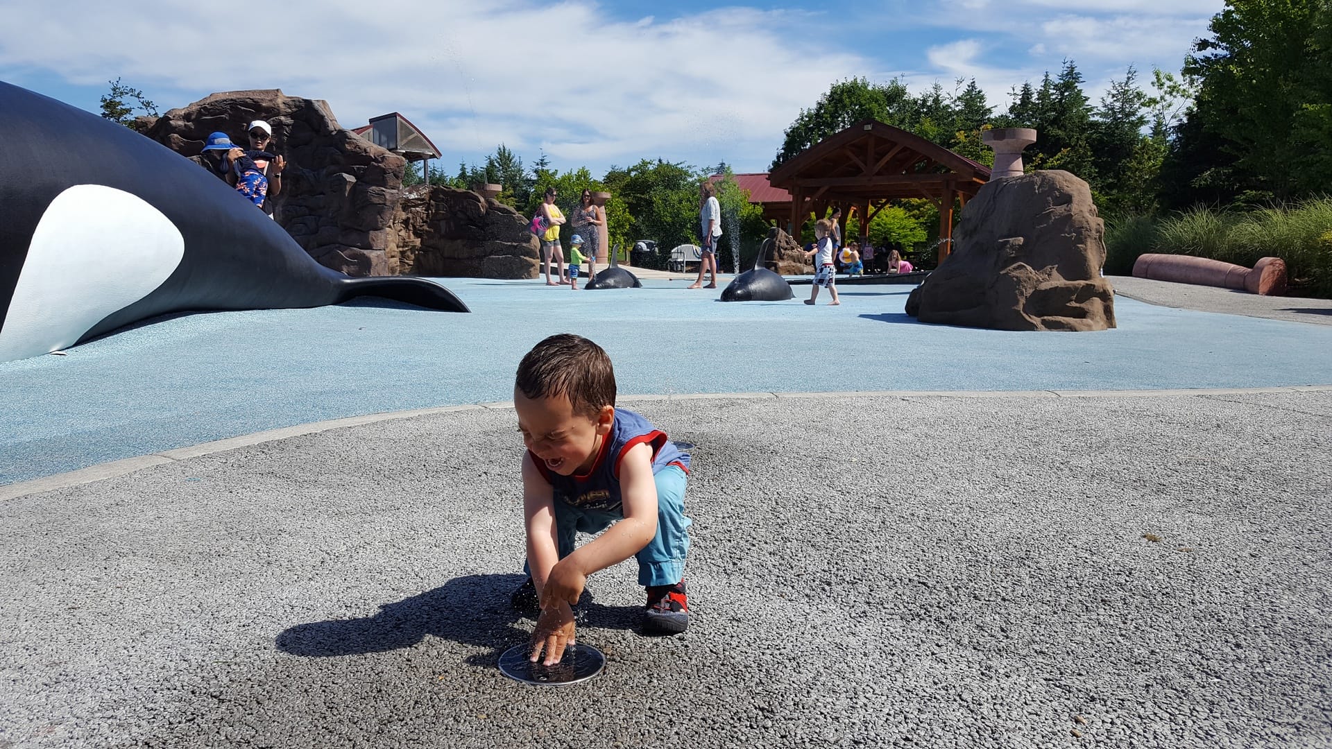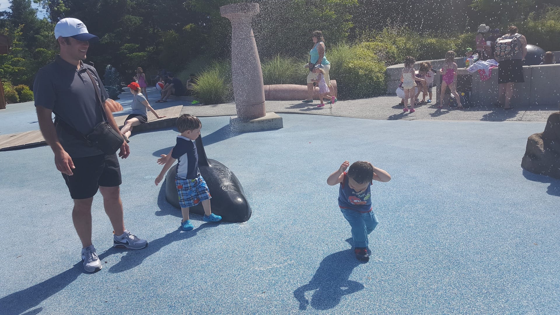 Dimanche matin, sous une chaleur toujours aussi pesante (33 degrés!), nous décidons de laisser Oscar se dépenser un peu en allant à Crossroad Park. L’été il y a des jeux pour enfants avec des fontaines dans ce parc, qui est à seulement 30 minutes de marche de chez nous.