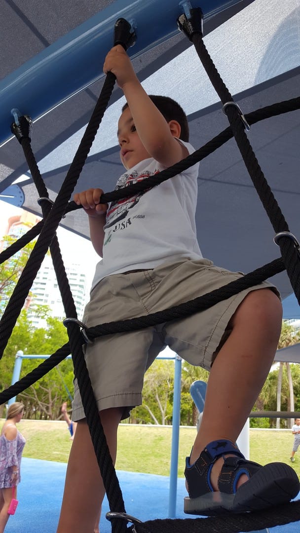 C’est sur cette longue promenade qui longe les plages, que nous faisons une petite pause « parc de jeu » pour Oscar.