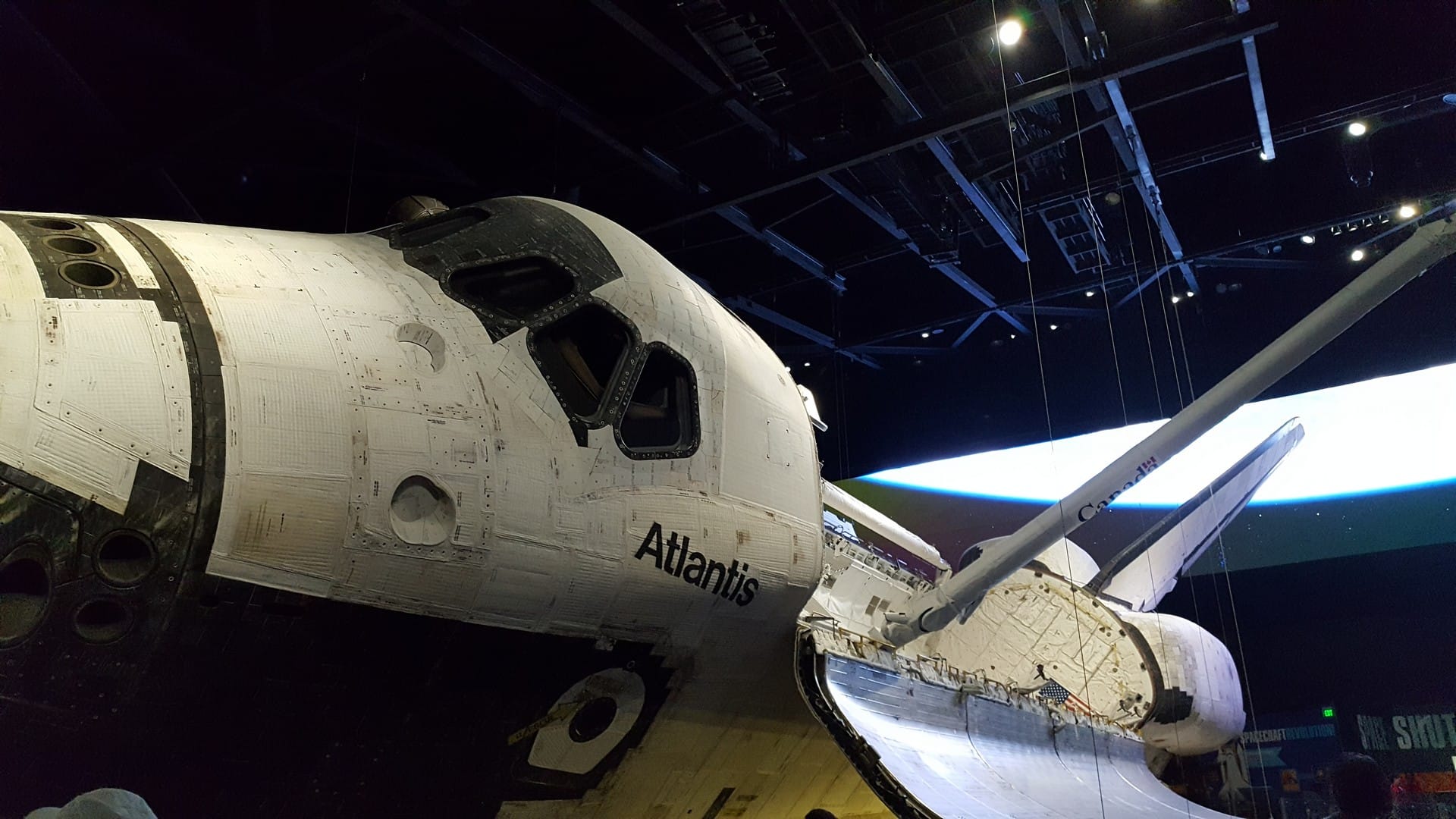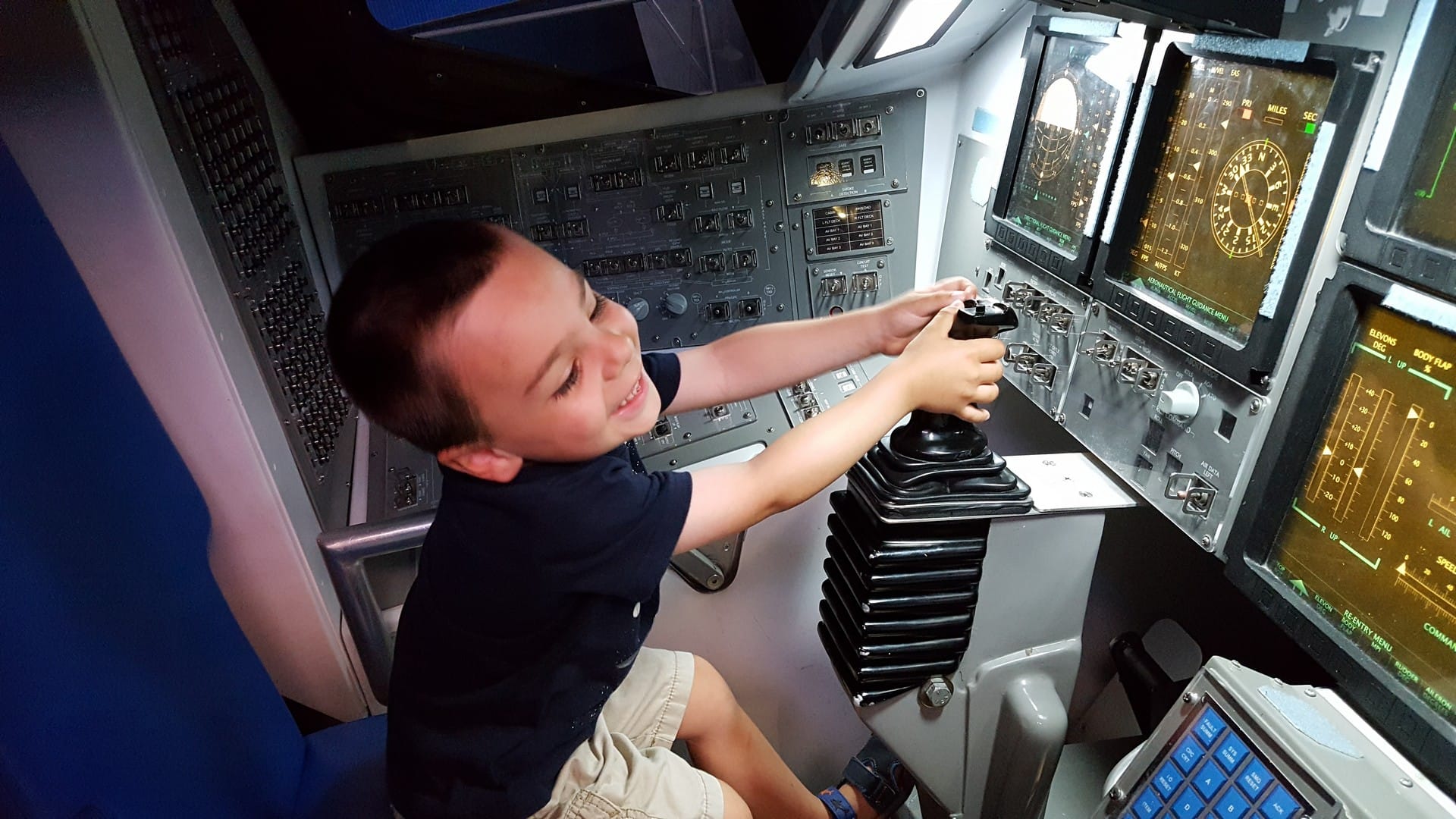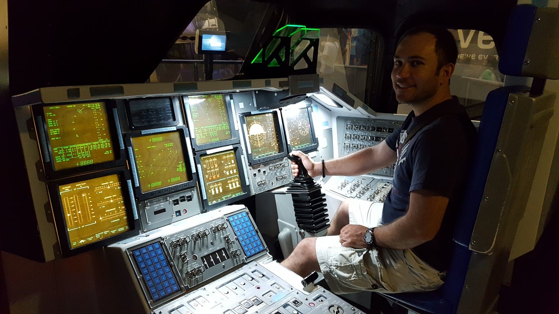 Elle est exposée au Kennedy Space Center, ici, donc. On dirait un prototype, mais c’est bien la navette telle qu’elle était. Les matériaux que l’on voit sont bien ceux qui sont allés dans l’espace ! Juste à côté, ils ont reproduit le cockpit pour que les enfants,