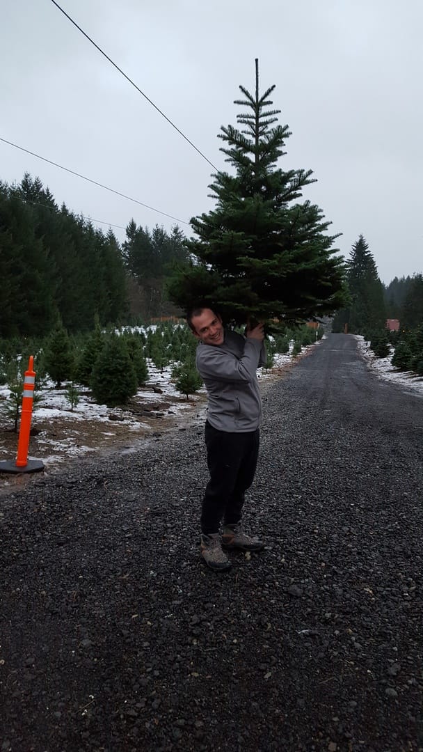 Ensuite on transporte le sapin fraîchement coupé jusqu’à l’accueil pour le faire emballer !