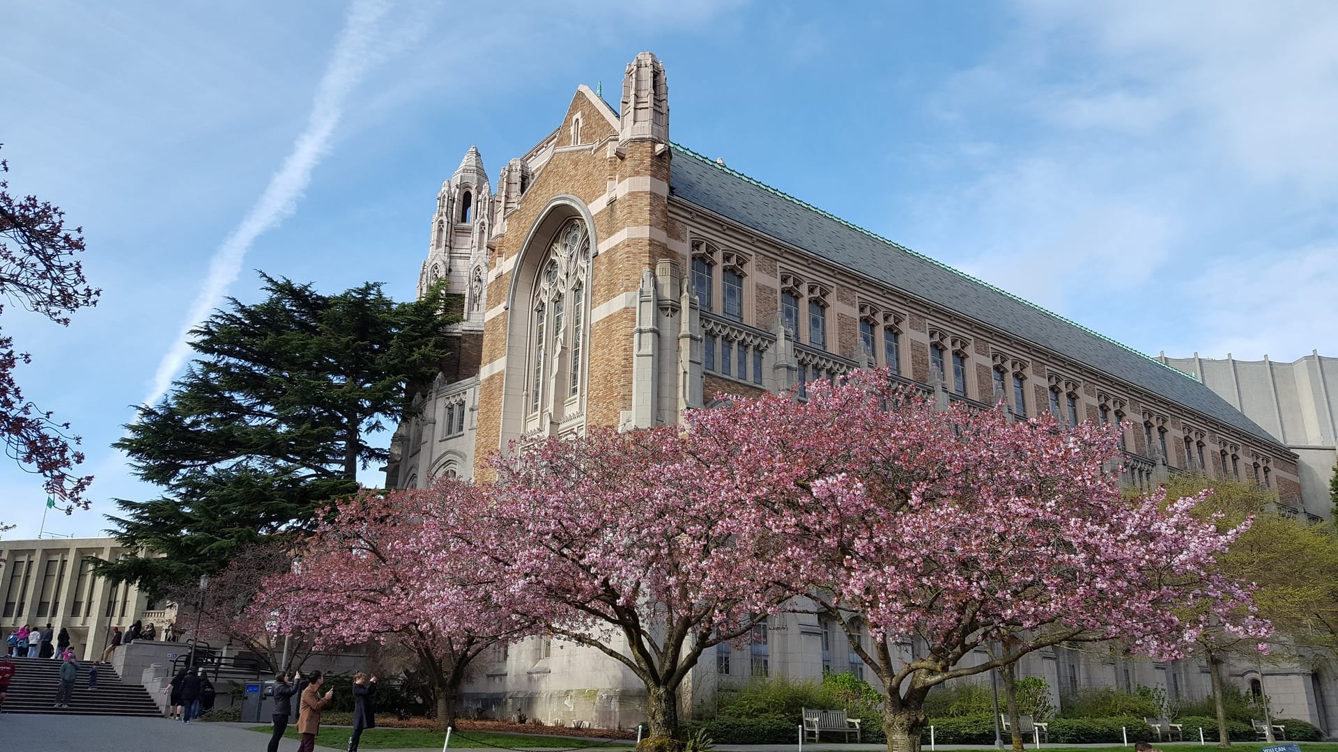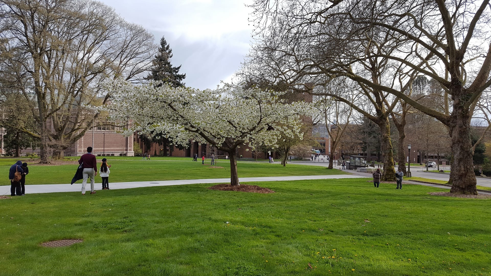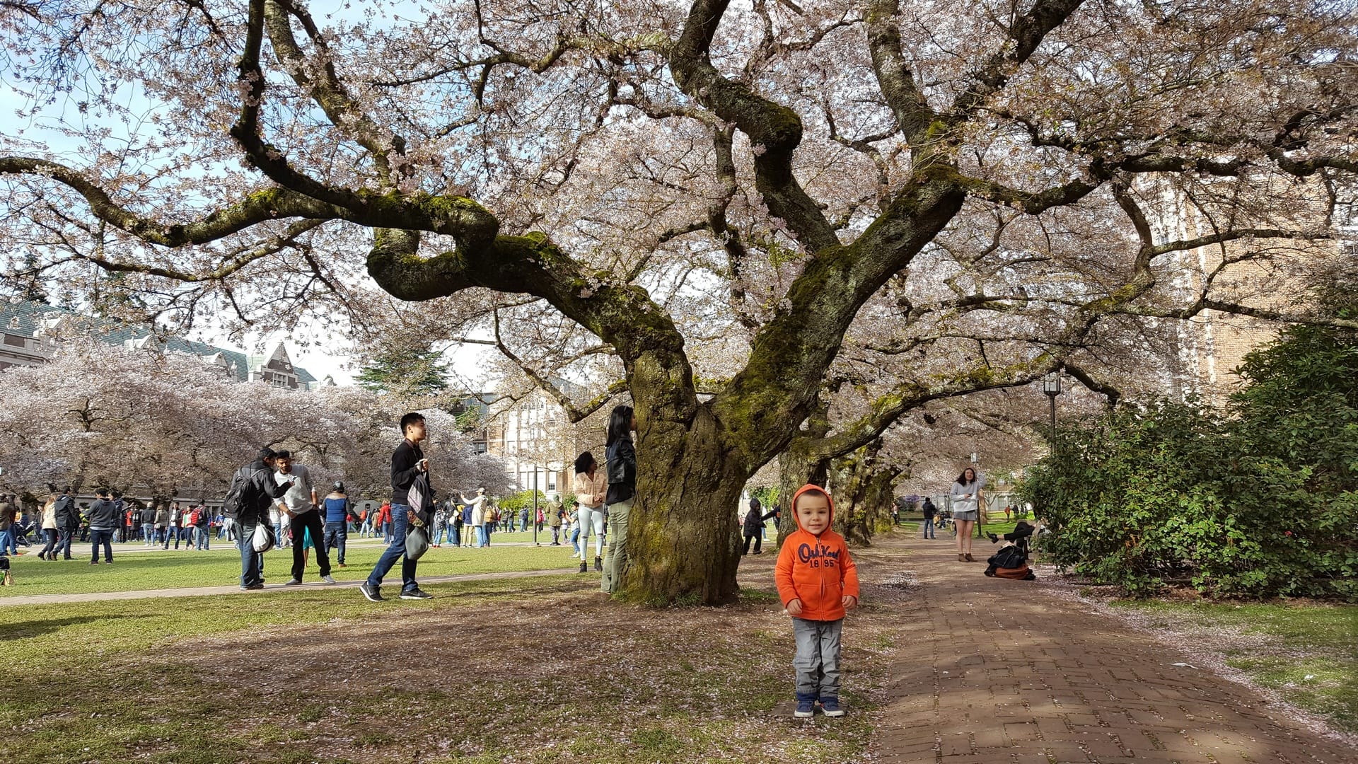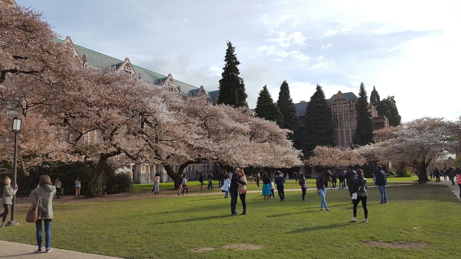 Comme il fait beau, nous allons nous balader à l’université de Washington pour y voir les cerisiers japonais en fleurs.