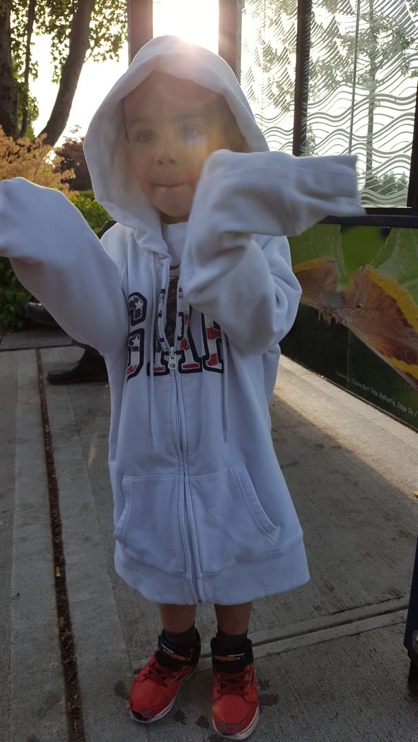 Comme ce jour-là je n’avais pas prévu le maillot de bain, il a fallu improviser à l’arrêt de bus pour qu’il n’ait pas froid.