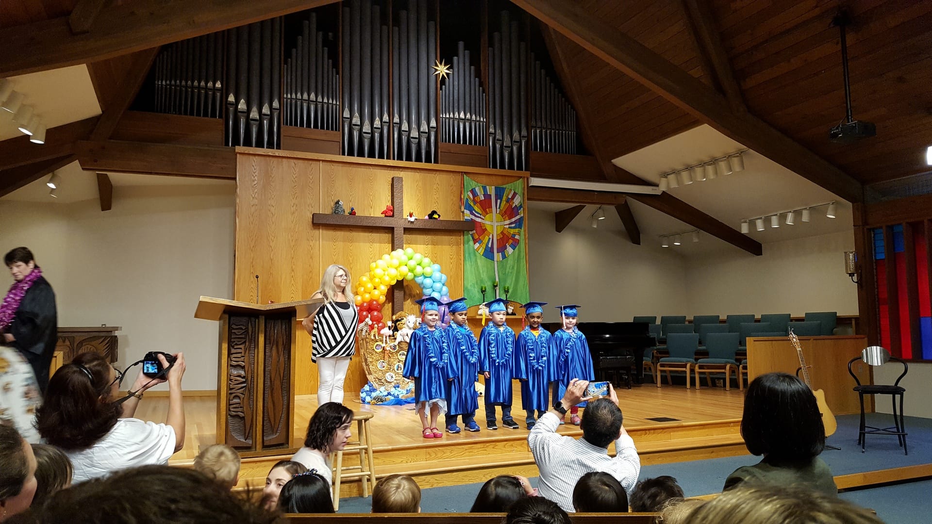 Pour Oscar aussi c’est la fin de l’année, ce qui rime avec « Graduation Party » ! Souvenez-vous l’an dernier nous vous en avions parlé aussi. A la fin de l’année pour les grands, il y a une fête car ceci marque la fin de la crèche et l’entrée à l’école, qui est obligatoire ici seulement à partir de 5 ans. Oscar est dans cette classe, mais il est encore trop jeune pour entrer à l’école en septembre, donc il ne « graduate » pas, et ne porte pas la tenue traditionnelle, ce sera pour l’an prochain !