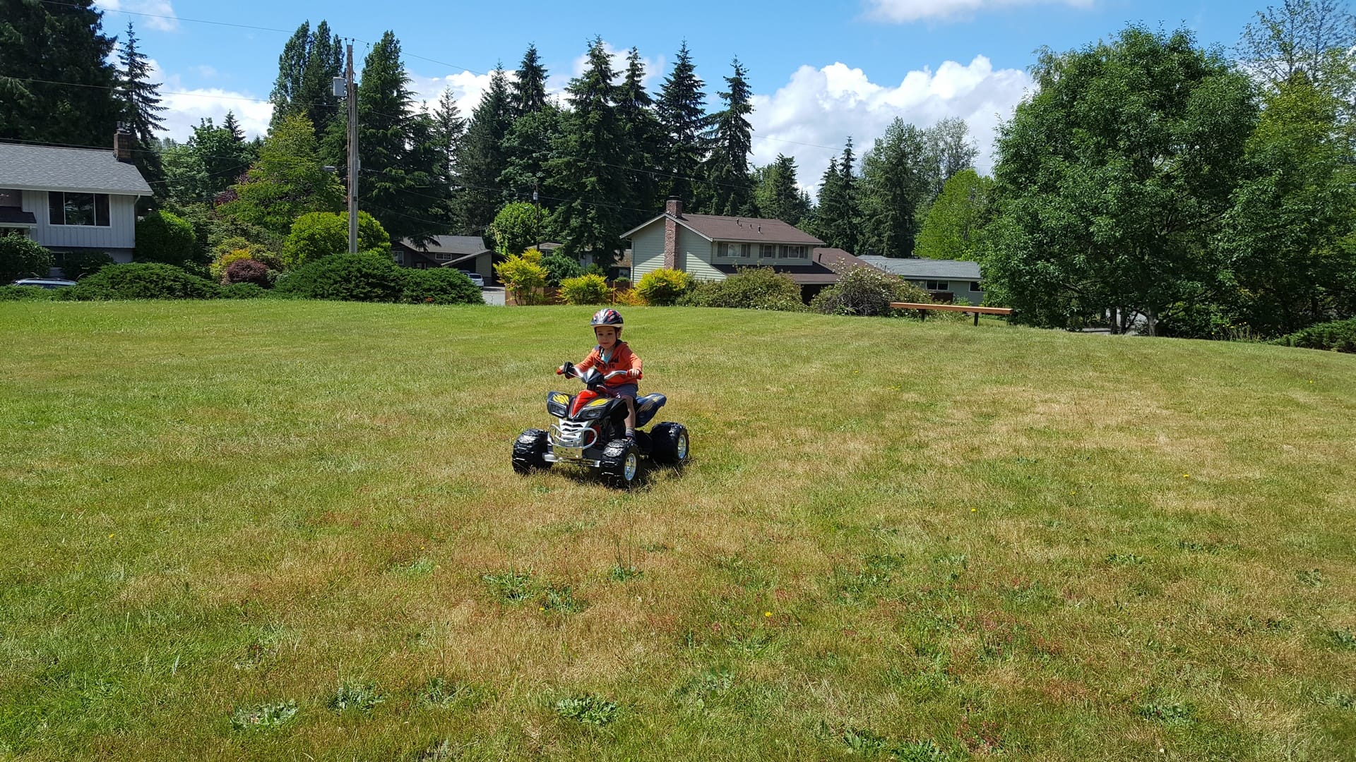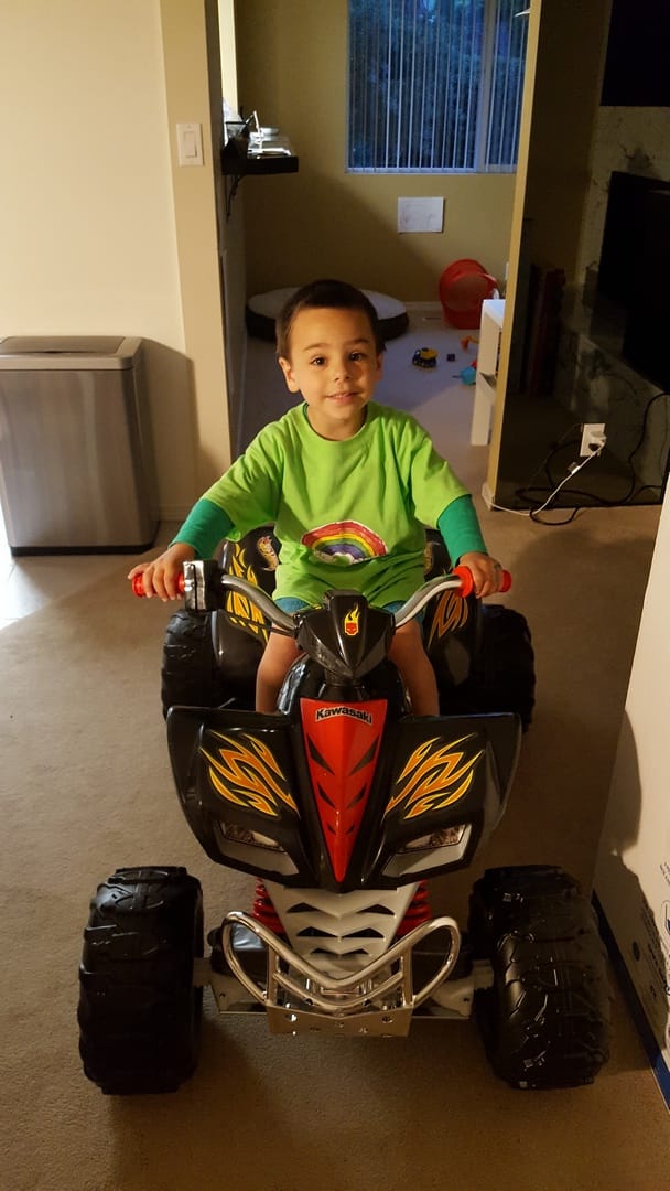 Un quad, comme à la ferme, mais cette fois c’est le sien. Il adore !
