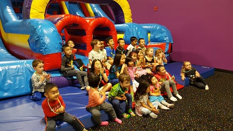 Et cette salle de jeu plait particulièrement aux enfants parce qu’ils peuvent jouer sur les maisons gonflables dans le noir !