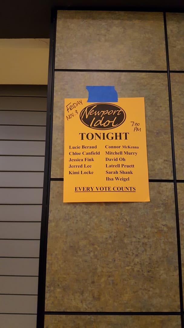 Et la voix c’est important pour chanter… Ce weekend là nous assistons à un concours de chant dans le lycée de Lucie, la fille de Valérie. Elle a été sélectionnée pour participer à la “Newport Idol”.