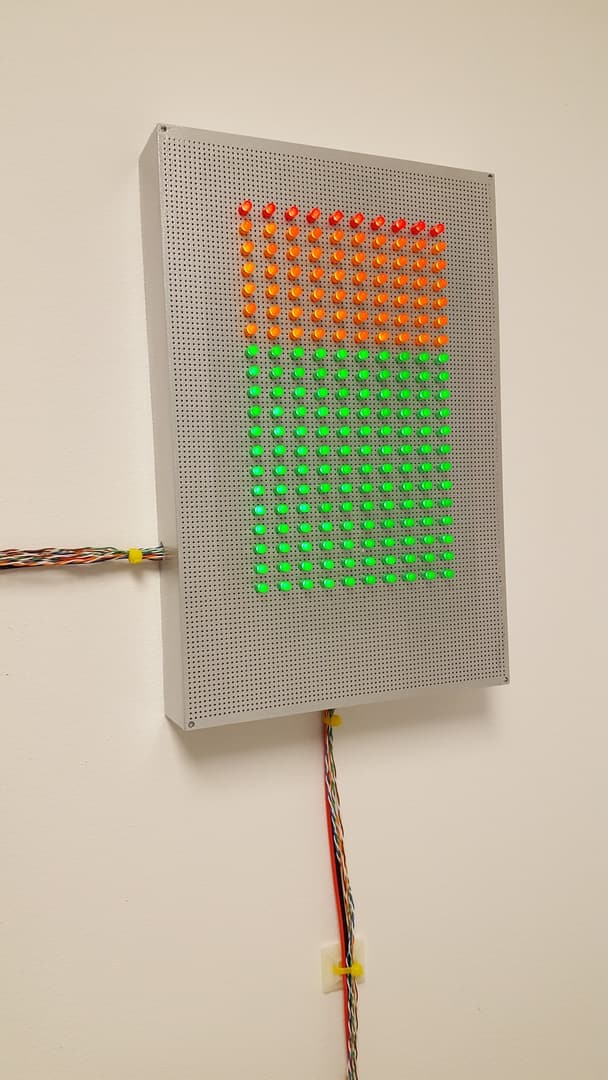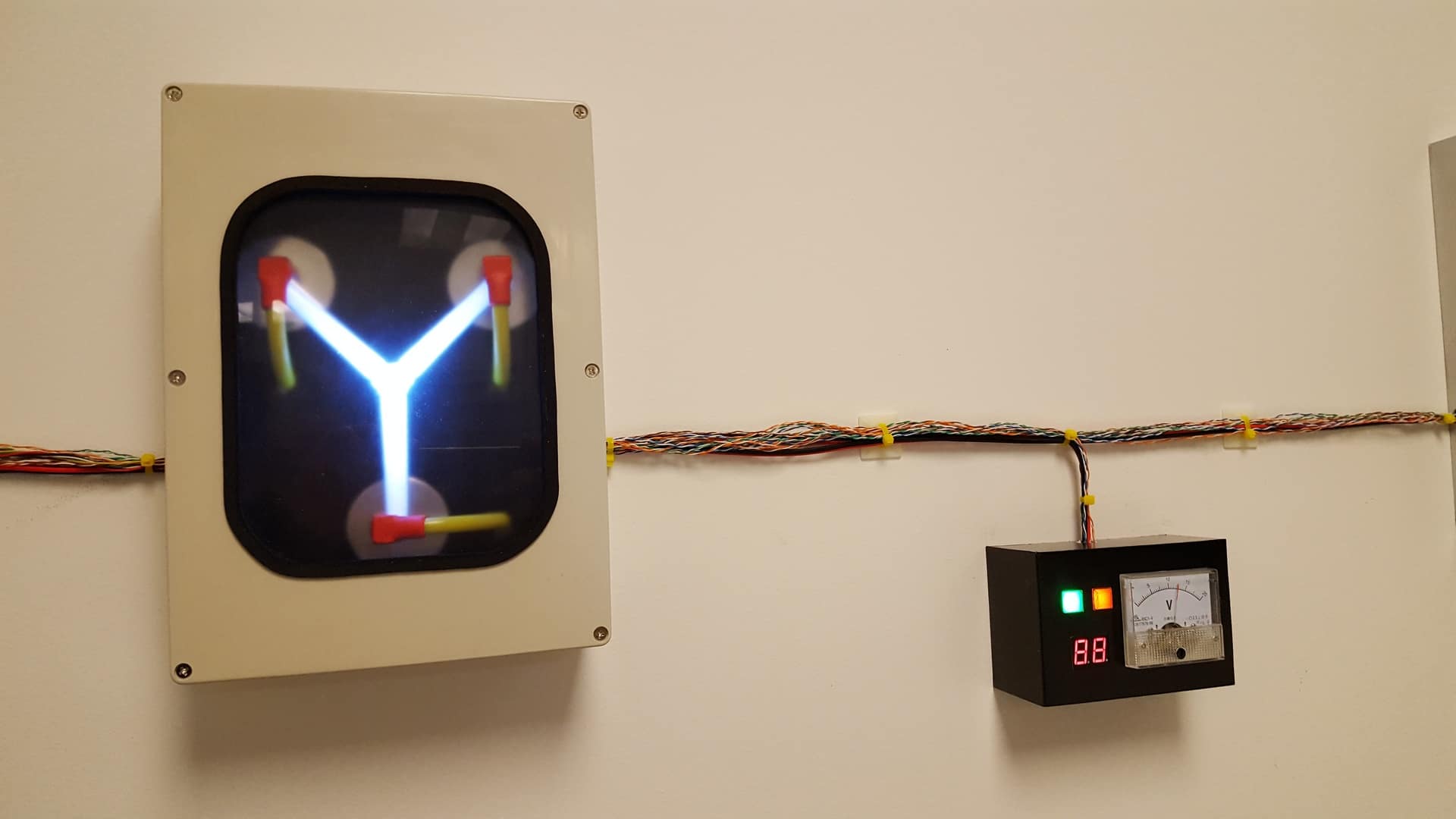 et enfin l’écran de contrôle quand le voyage dans le temps commence : un cadran avec 200 LEDs soudées à la main par Rodolphe.