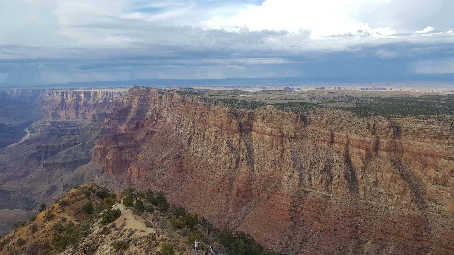 Le Canyon s’étend sur environ 16 km de largeur et 446 km de longueur, avec une profondeur moyenne de 1 600 m. La promenade que nous empruntons en premier nous offre des vues panoramiques spectaculaires, et nous révèle toute la beauté et la singularité de ce lieu le plus touristique des Etats-Unis, juste devant Manhattan et le parc de Yellowstone.
