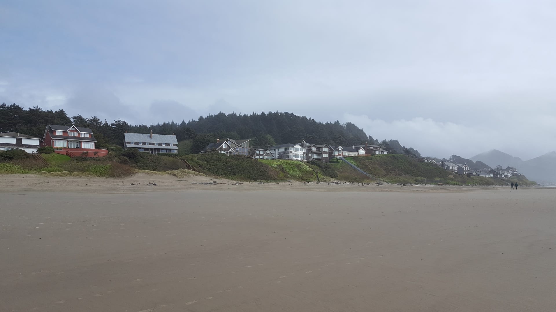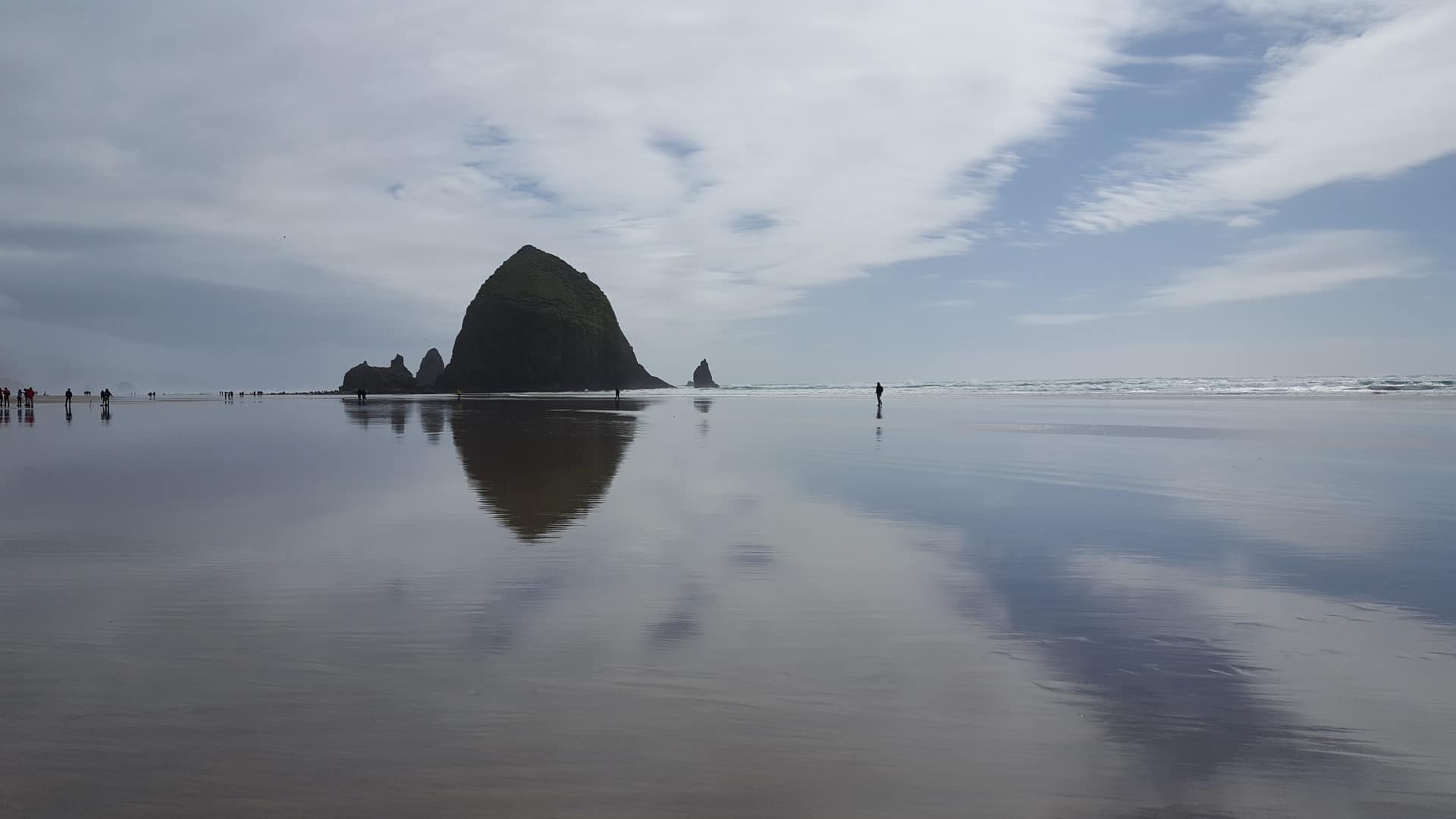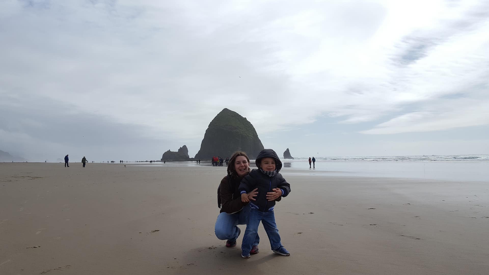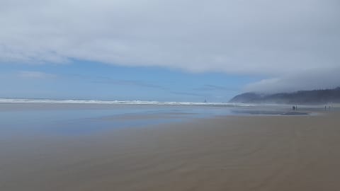 Le temps n’est pas franchement au rendez-vous, mais cela ne nous empêche pas de nous promener sur la plage de Canon Beach.