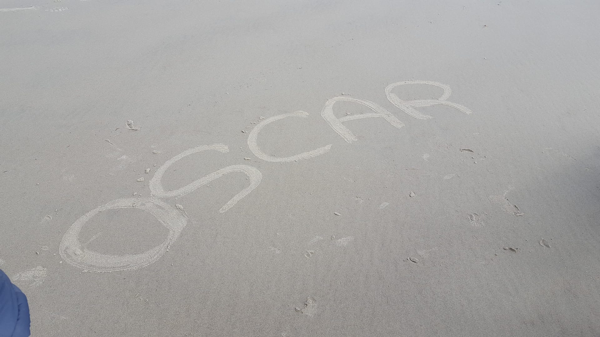 Malgré le vent, on se fait une petite course sur la plage et qui finit par attraper Oscar ? C’est maman !