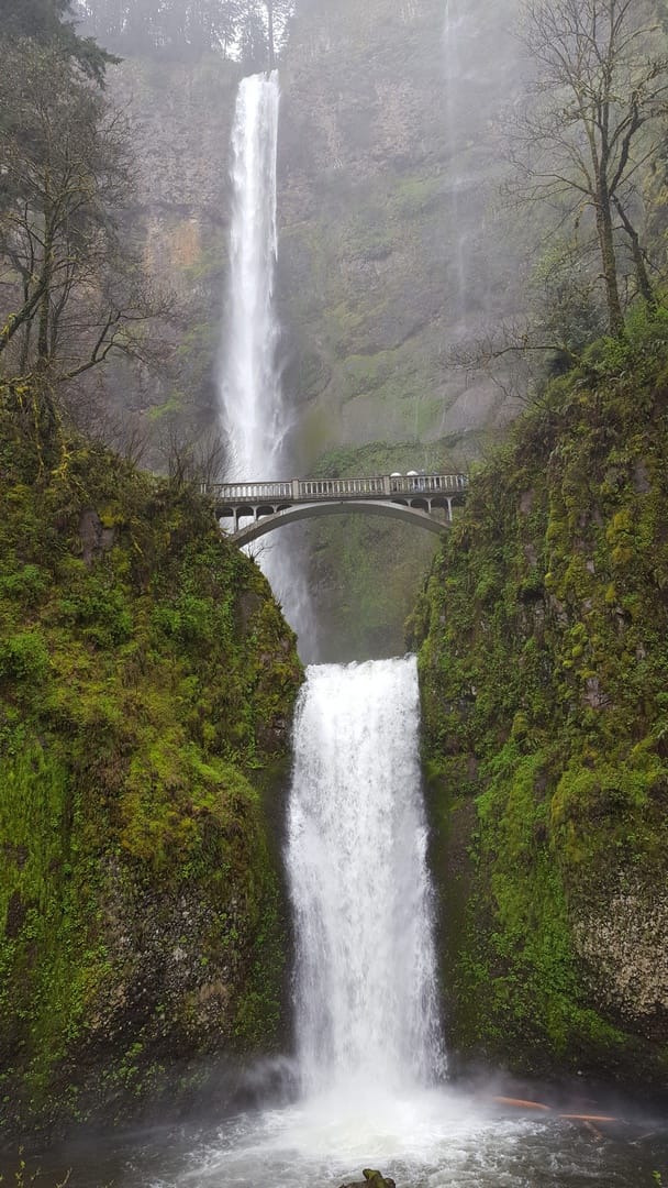 Malgré la pluie, nous décidons de faire la petite balade qui surplombe la moitié de “Multnomah Falls”, les chutes les hautes de l’Oregon avec 189 mètres de chute.