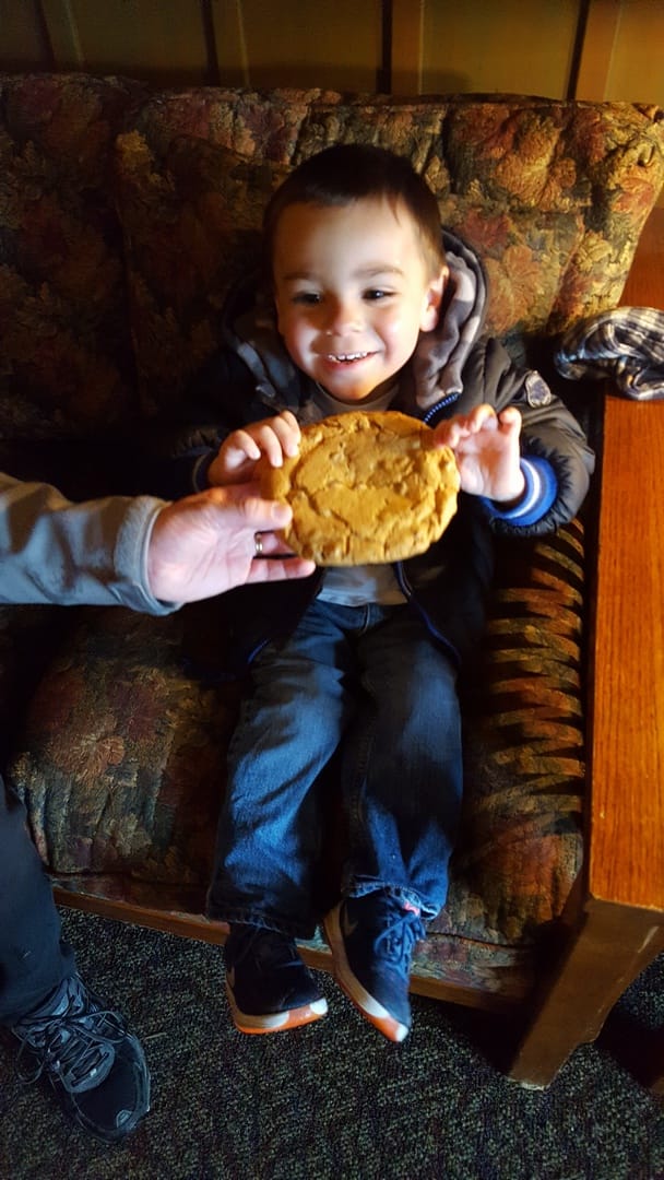 La balade n’est pas très difficile mais avec le vent et la pluie nous avons connu plus agréable. Alors après l’effort, le réconfort : nous partageons un petit cookie avec Oscar avant de prendre la route de Bellevue !
