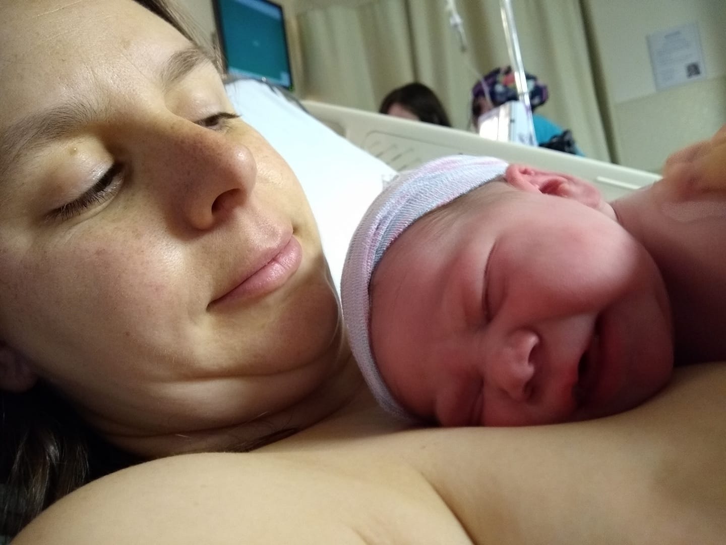 Le temps de faire les vérifications et examens d’usage, j’ai pu avoir une péridurale in-extremis ! A 6h48 après seulement quelques poussées, elle est enfin apparue : 49.5 cm et 3.315kg. Plus grande et plus fine qu’Oscar.