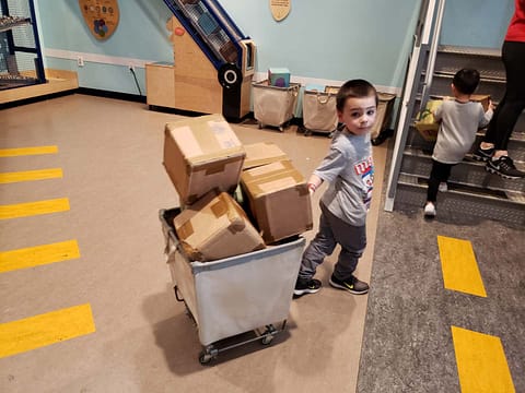 C’est un musée de la science orienté sur le jeu. Le concept c’est qu’il y a des pièces à thème et dans ces pièces on peut expérimenter différentes choses : la livraison des colis comme à la poste, l’eau et la force qu’elle peut exercer sur des obstacles, la peinture dans tous ces états, la poterie… Bref Oscar adore et j’avoue que moi aussi. Apprendre par le jeu je trouve que c’est vraiment top pour les enfants !