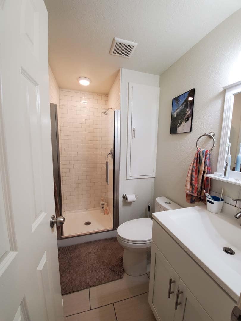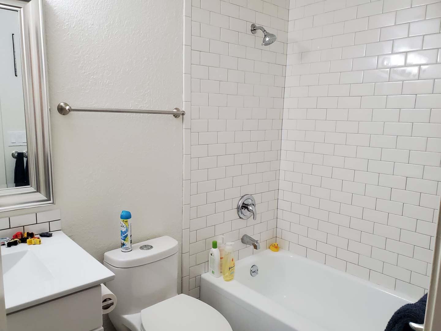 Petit stop par la salle de bain des enfants, qui se trouve en face de la chambre de Roxane :