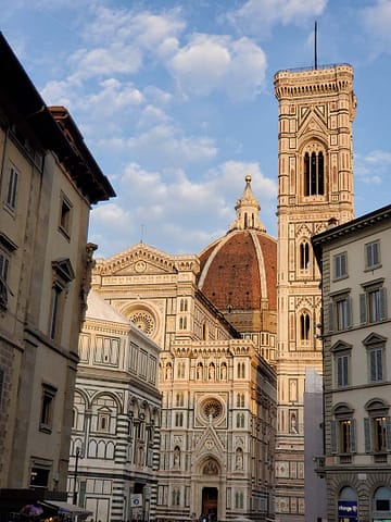 Nous poursuivons le voyage par un arrêt devant l’église Santa Maria Novella. Historiquement cette église a été la première grande basilique de Florence. Elle a ensuite été remplacée par l’emblématique cathédrale de Florence.