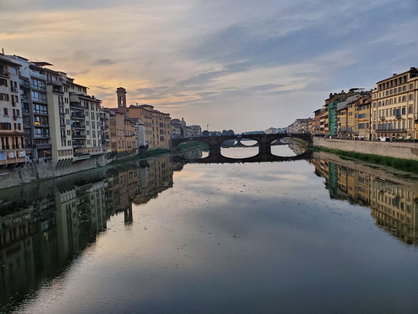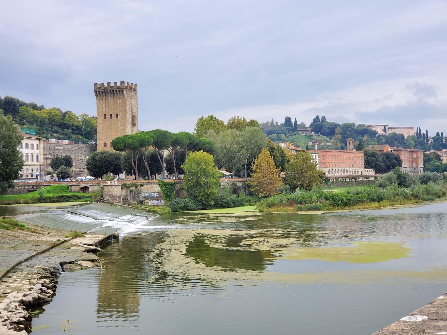 Puis notre marche se poursuit en bordure de la rivière Arno, où nous pouvons admirer encore une fois la vue,