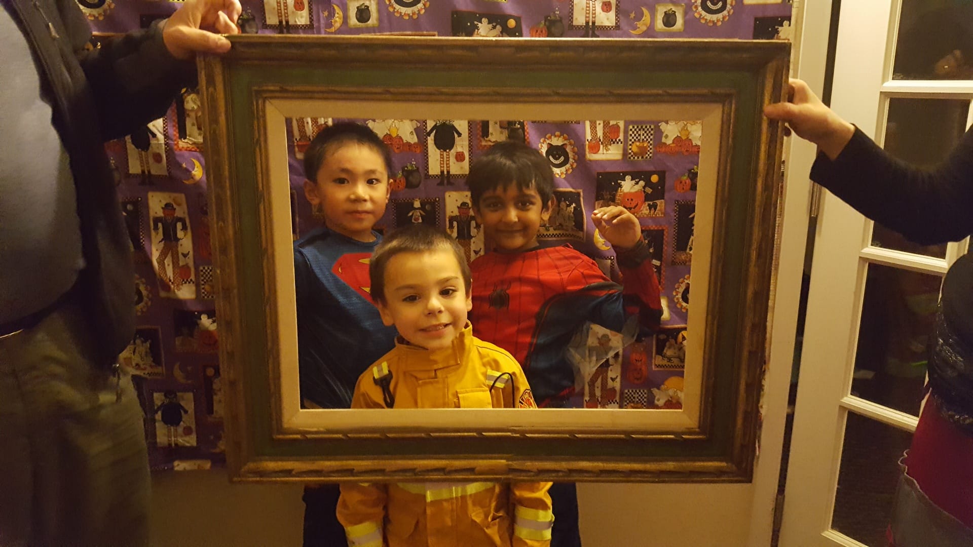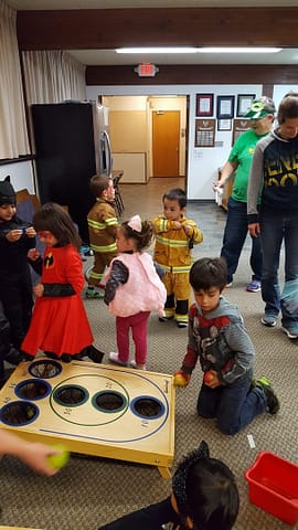 Cette année, nous avons aussi une soirée Halloween chez Geo. Parents et enfants doivent être déguisés pour l’occasion. Alors tout le monde est déguisé : Oscar en pompier