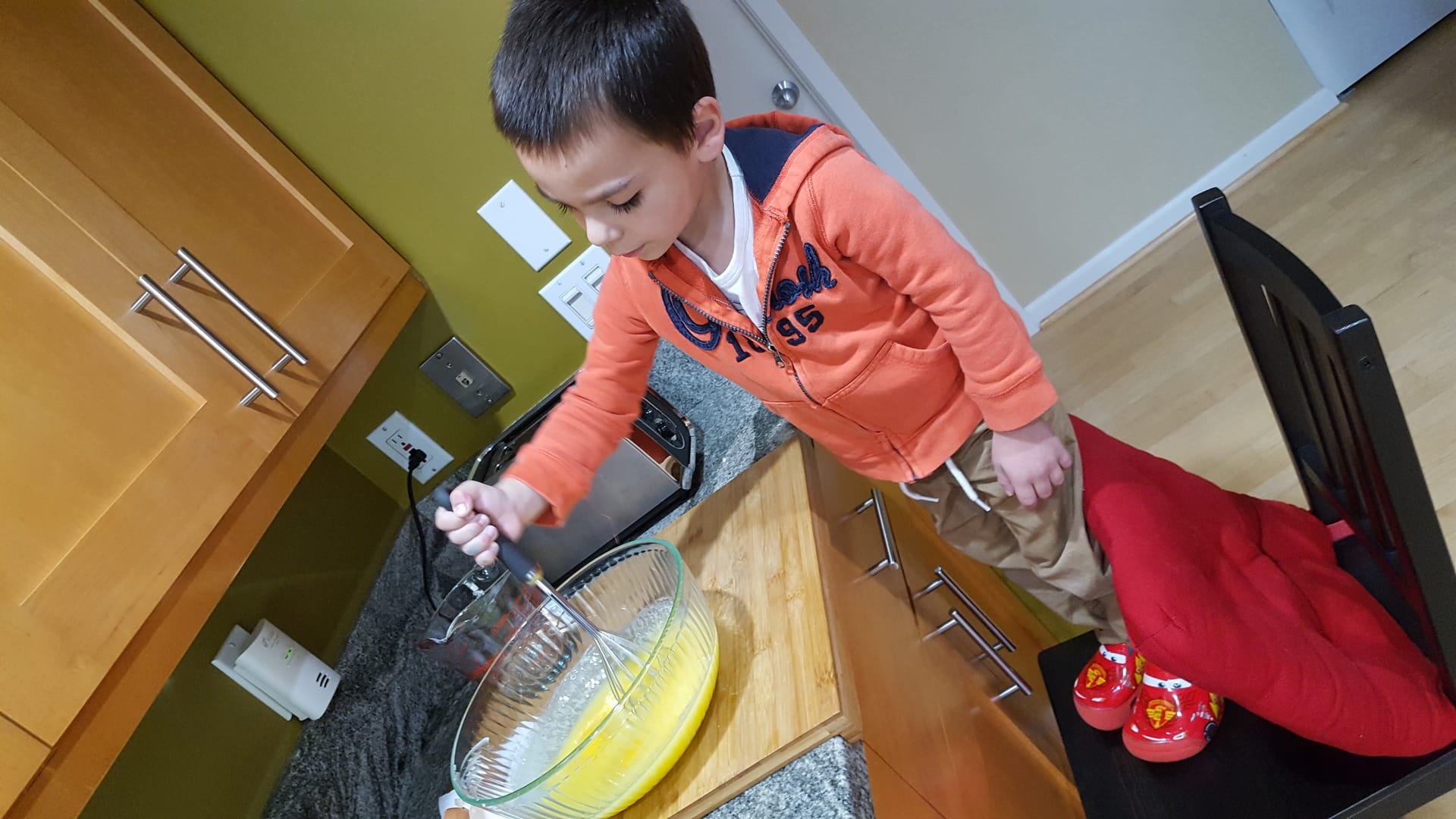 Oscar m’a aidé, on a passé un bon moment et on en a mis partout dans la cuisine…