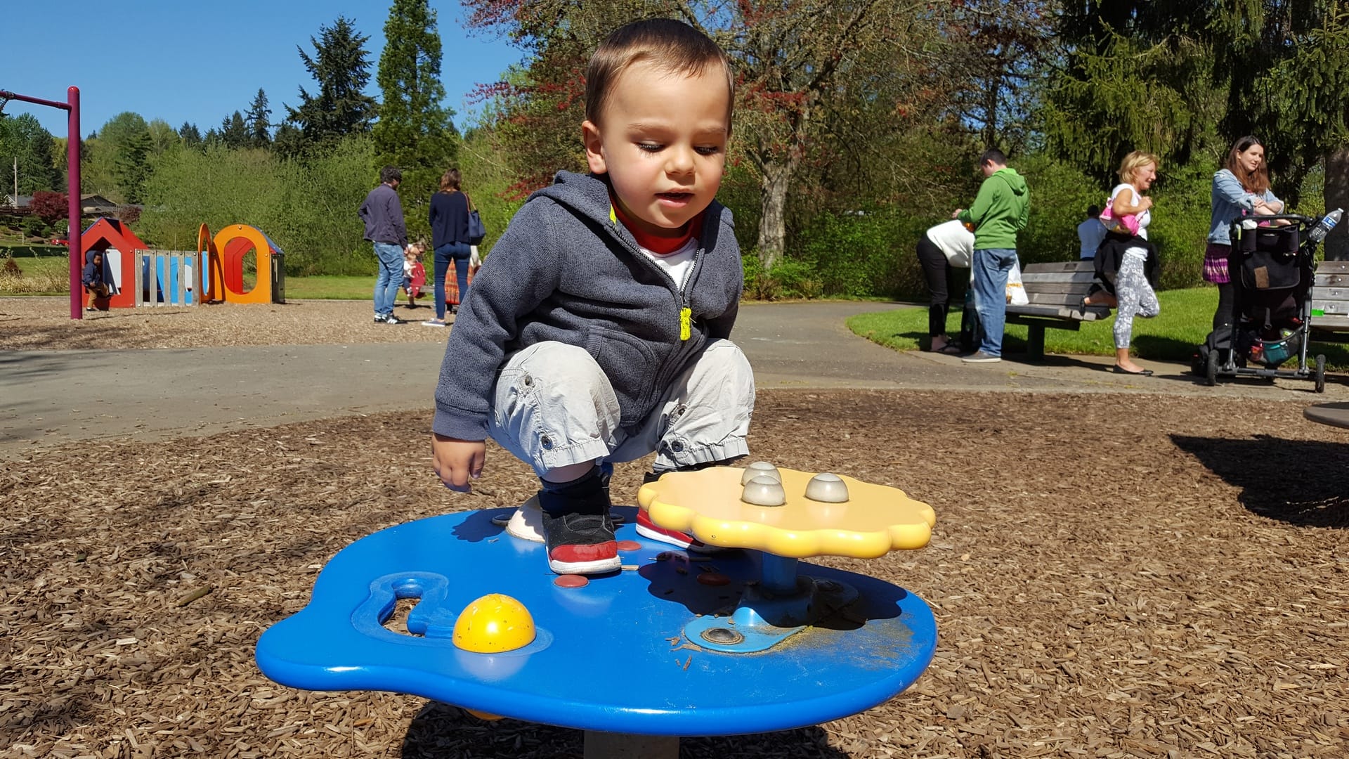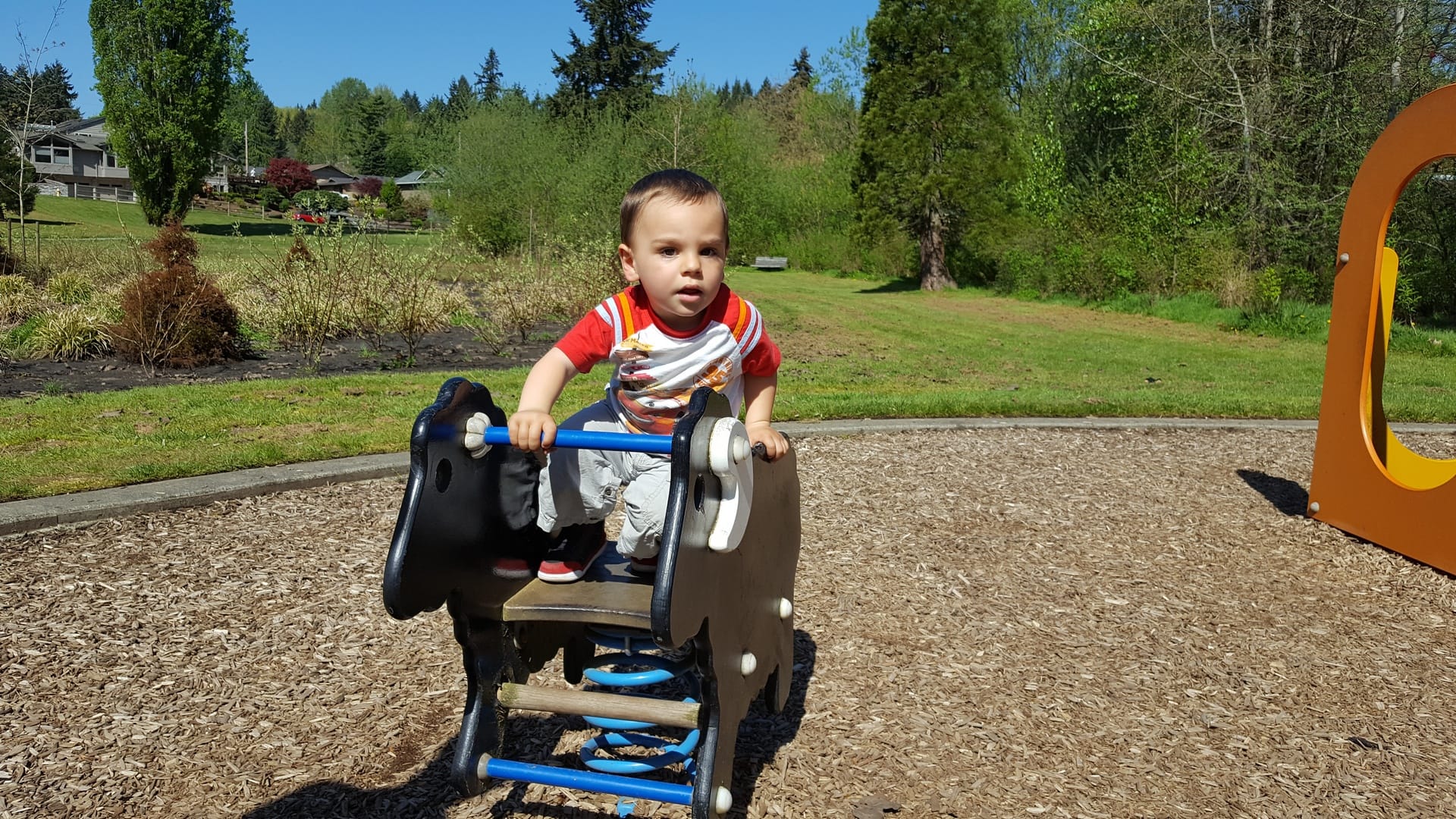 Il a tout simplement adoré ! Reprise des vélos pour redescendre dans le parc pour qu’Oscar puisse jouer un peu avant le pic nique.