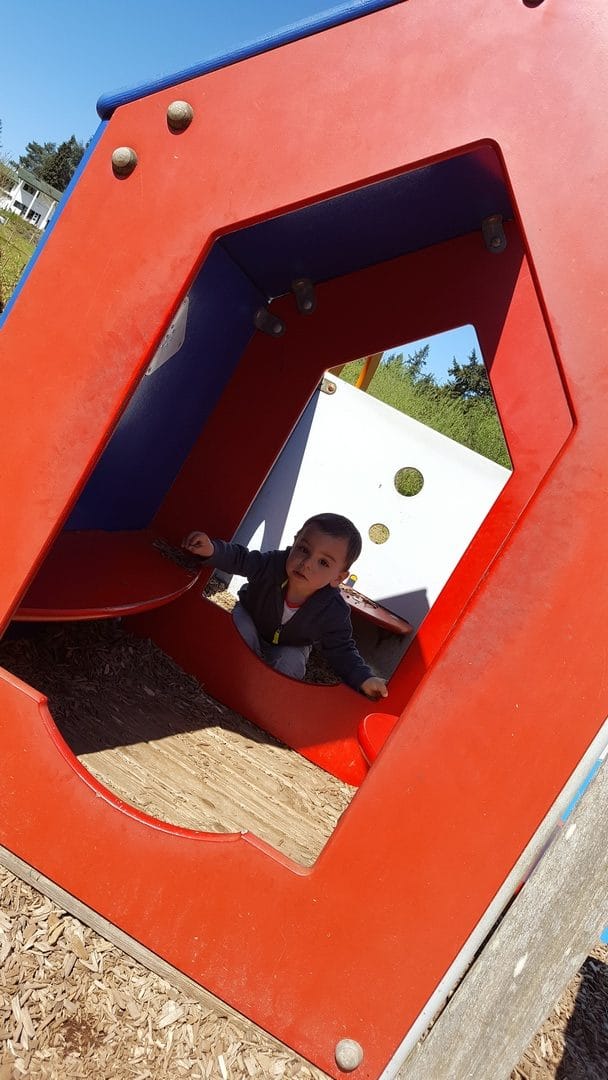 Apres 20 minutes de vélo, nous voila arrivé a Kelsey Creek Farm, une petite ferme qui est dans le parc. Oscar y a découvert (a nouveau) des moutons, des chèvres, des lapins, des poules, etc…