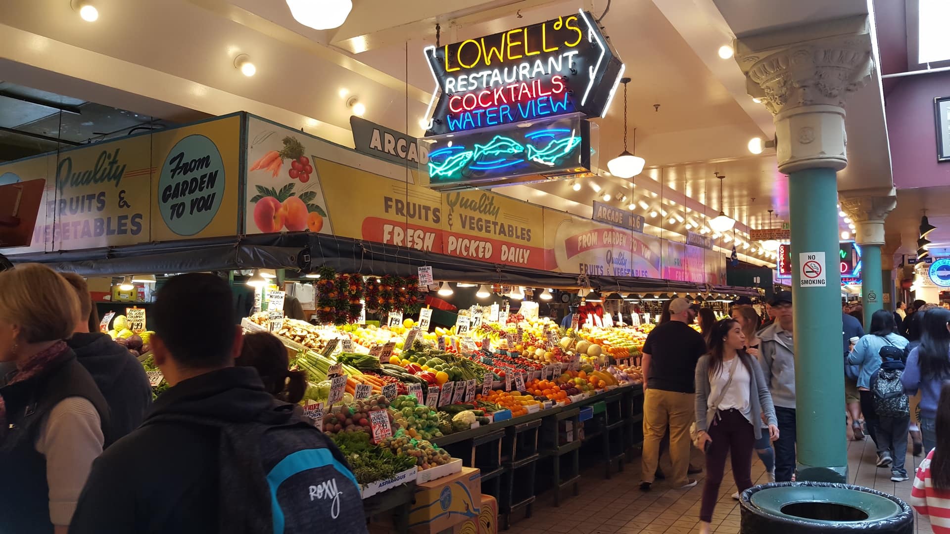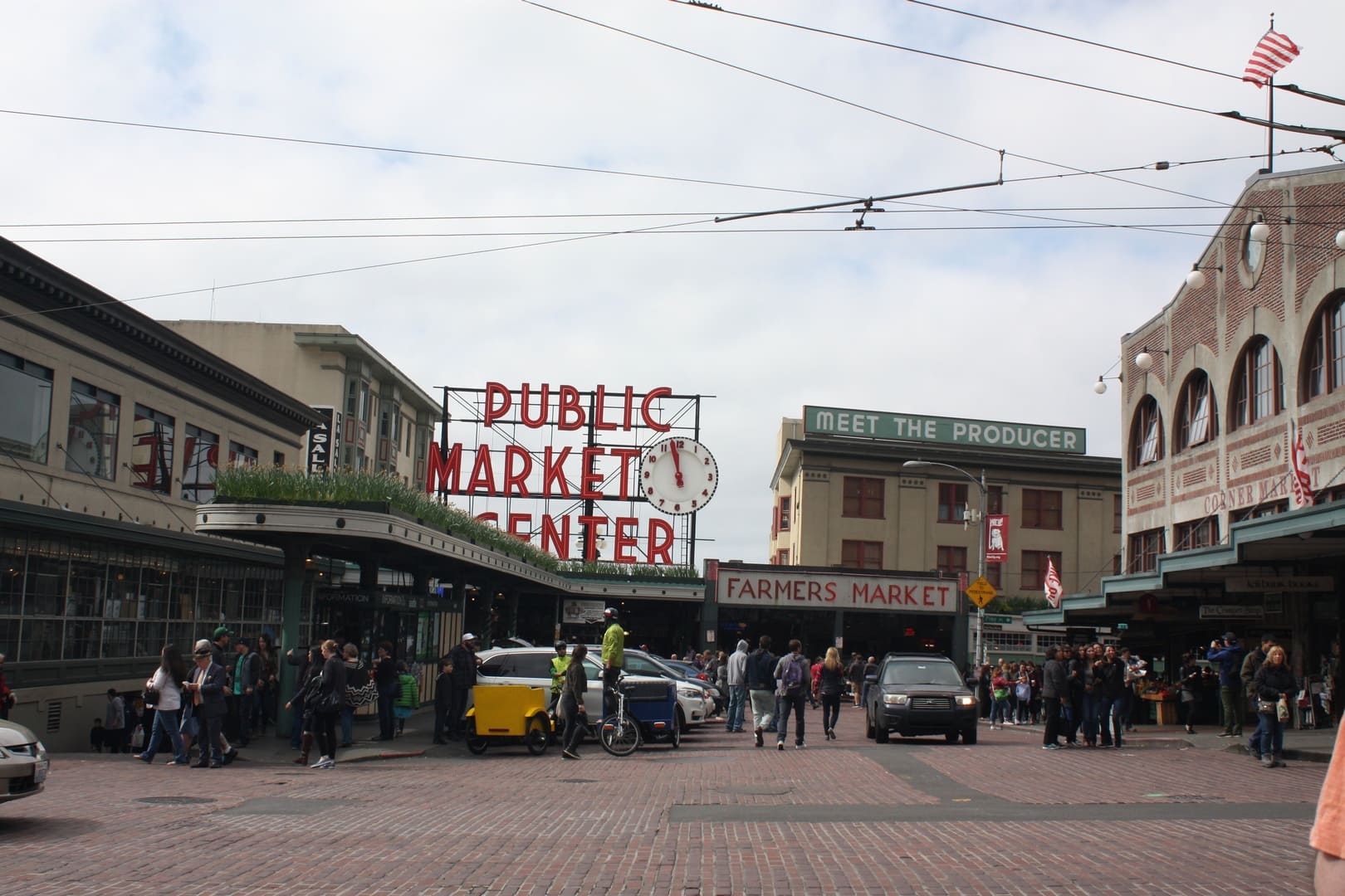 Première étape de ce périple, le marché paysan de Pike Place Market en plein centre de Seattle. Ce marché, situé sur la baie d’Elliot, a été ouvert pour la première fois en 1907, et est l’un des marchés les plus anciens des Etats-Unis, a toujours opéré.