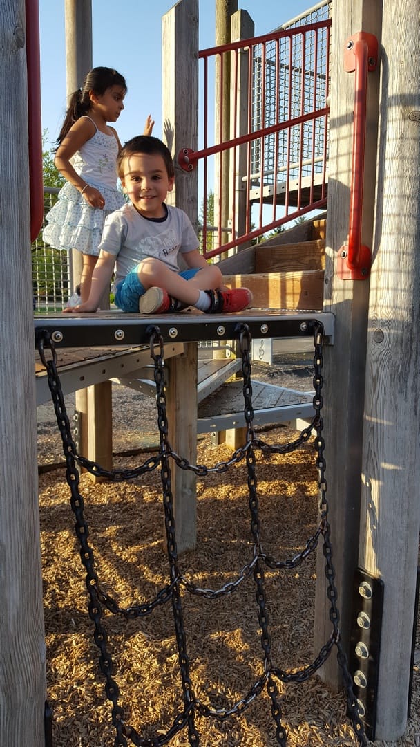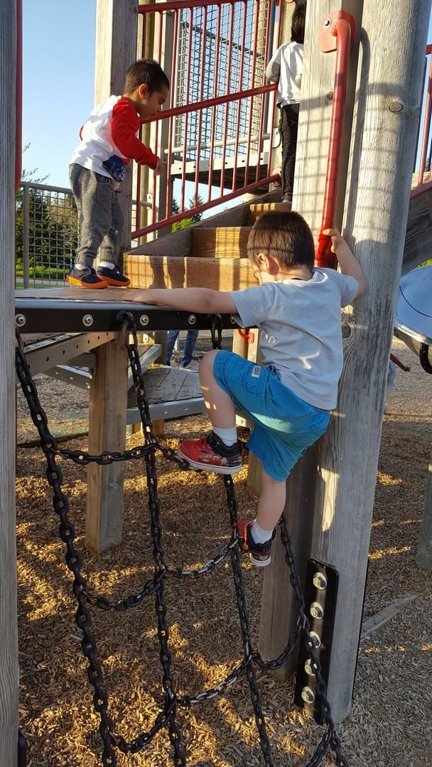Ce mois d’avril est particulièrement clément, nous en profitons pour aller au parc le soir après l’école. Et même après une journée d’école, Oscar est en pleine forme : entre jouer les capitaines de bateau,