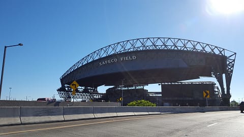Ce soir c’est le grand soir car pour la première fois depuis que nous sommes ici, nous allons voir un match de baseball ! L’équipe de Seattle s’appelle les Mariners. Le nom de l’équipe a été inspiré par la culture “marine” qui règne sur la ville de Seattle. Donc ce soir, direction le Safeco Field, la “maison” des Mariners :
