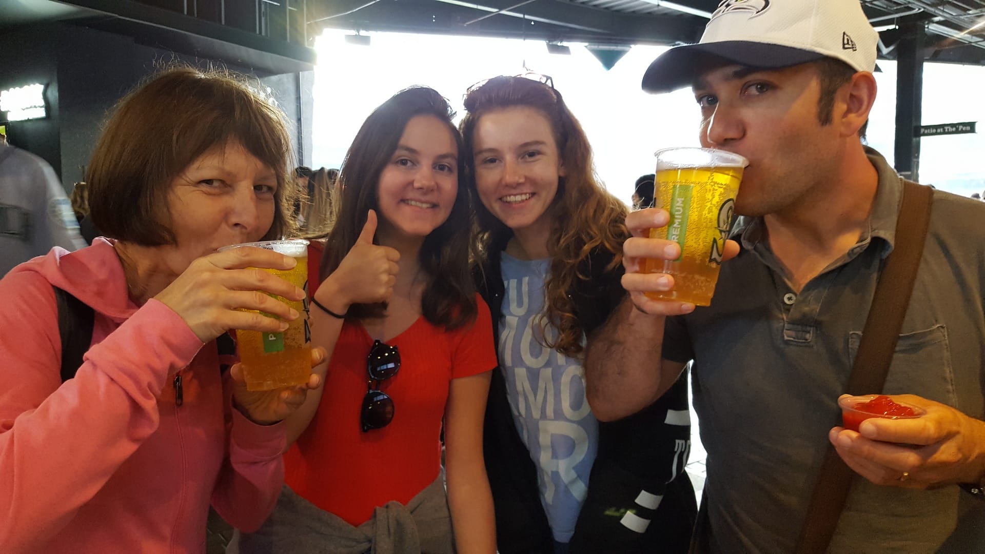 Après l’effort, le réconfort ! Ce soir direction un petit match de baseball ! L’été aux US on ne peut pas y couper… C’est juste un passage obligé à vivre !! Et je crois que Raphaëla s’est découvert une passion pour ce sport ! En arrivant au stade, en bons américains, on commence par prendre à manger, et surtout à boire.