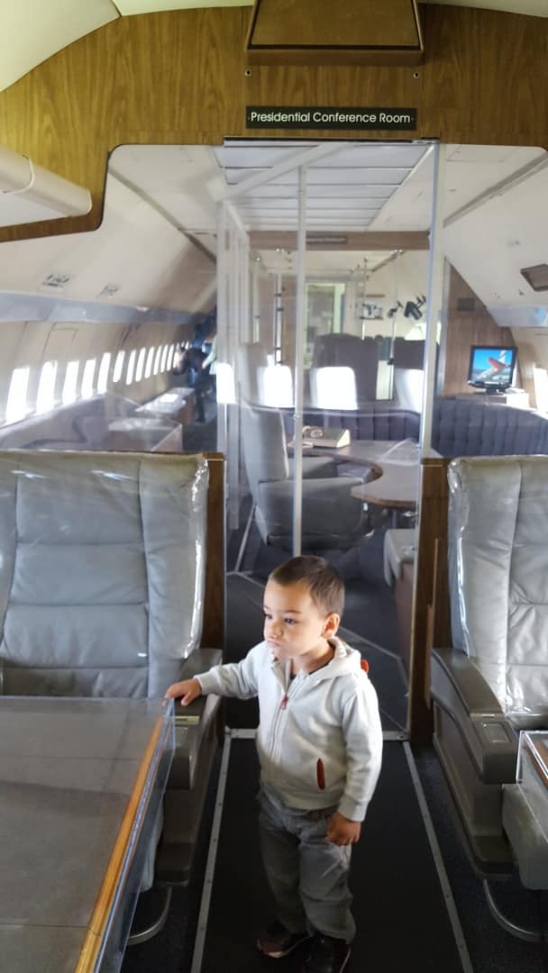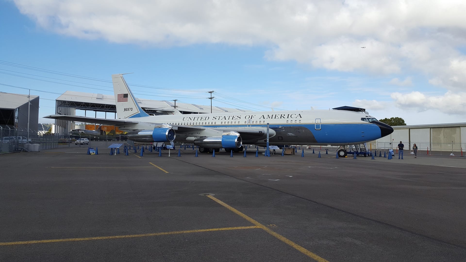 Nous commençons par la partie extérieure du musée qui expose le tout premier Boeing 727, ainsi que l’ancien Air Force One, en service jusqu’en 1996.