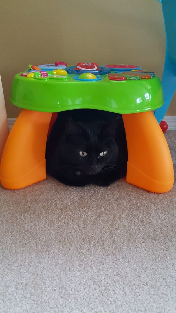 C’est quand même la classe non ?! Avec toute cette agitation Mahi a un peu peur et préfère se cacher !!
