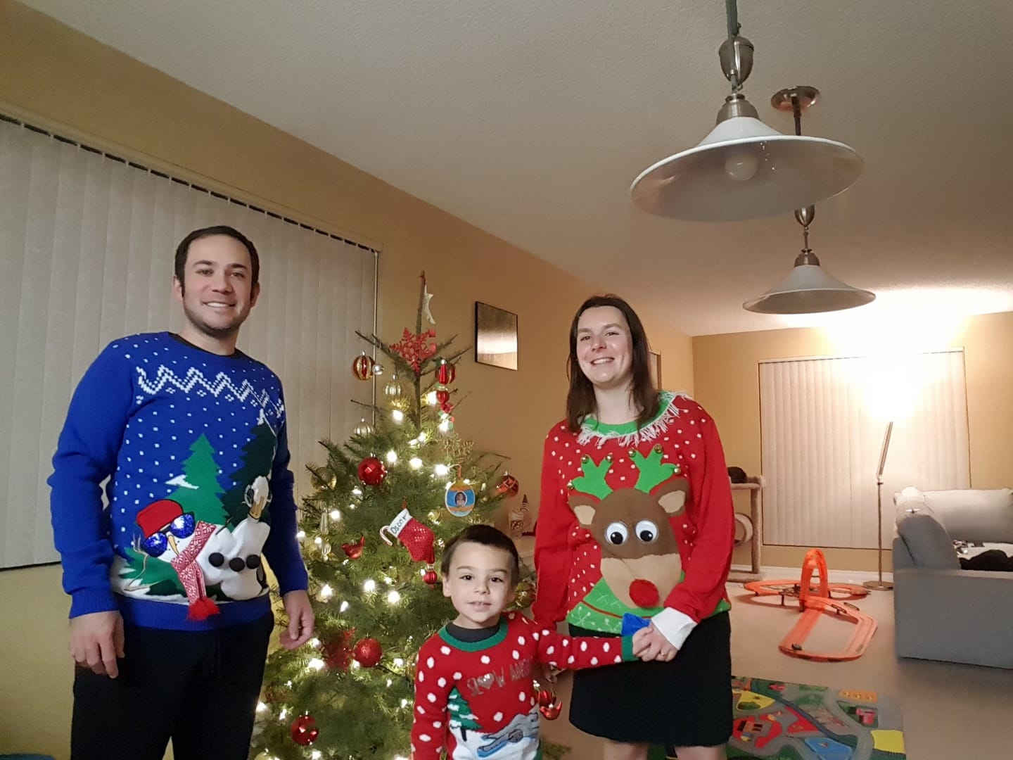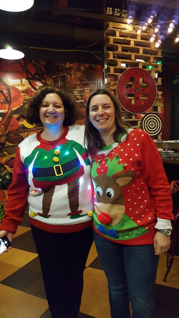 Avec tout ça nous étions fin prêts pour le grand jour ! Enfin… Pas tout à fait ! Car ici il y a une autre tradition : le pull moche de Noël ! Nous avons même fait un concours au boulot ! Valérie a gagné le premier prix et je suis arrivée seconde :