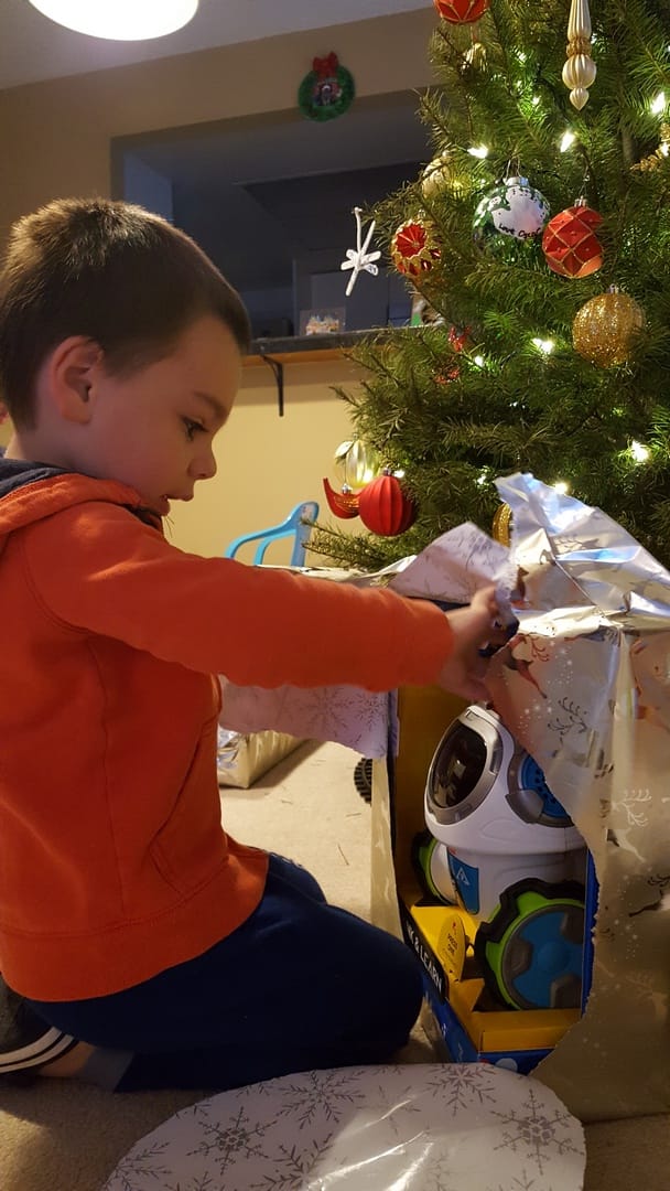 Mais une fois qu’il a vu tous les cadeaux, il ne lui a pas fallu longtemps pour les ouvrir.