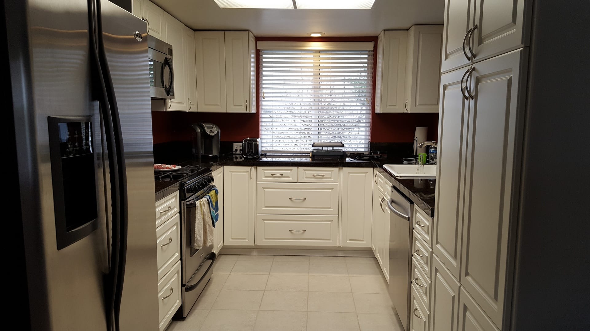 qui donne sur la cuisine, style américain également avec le frigo qui fait des glaçons :