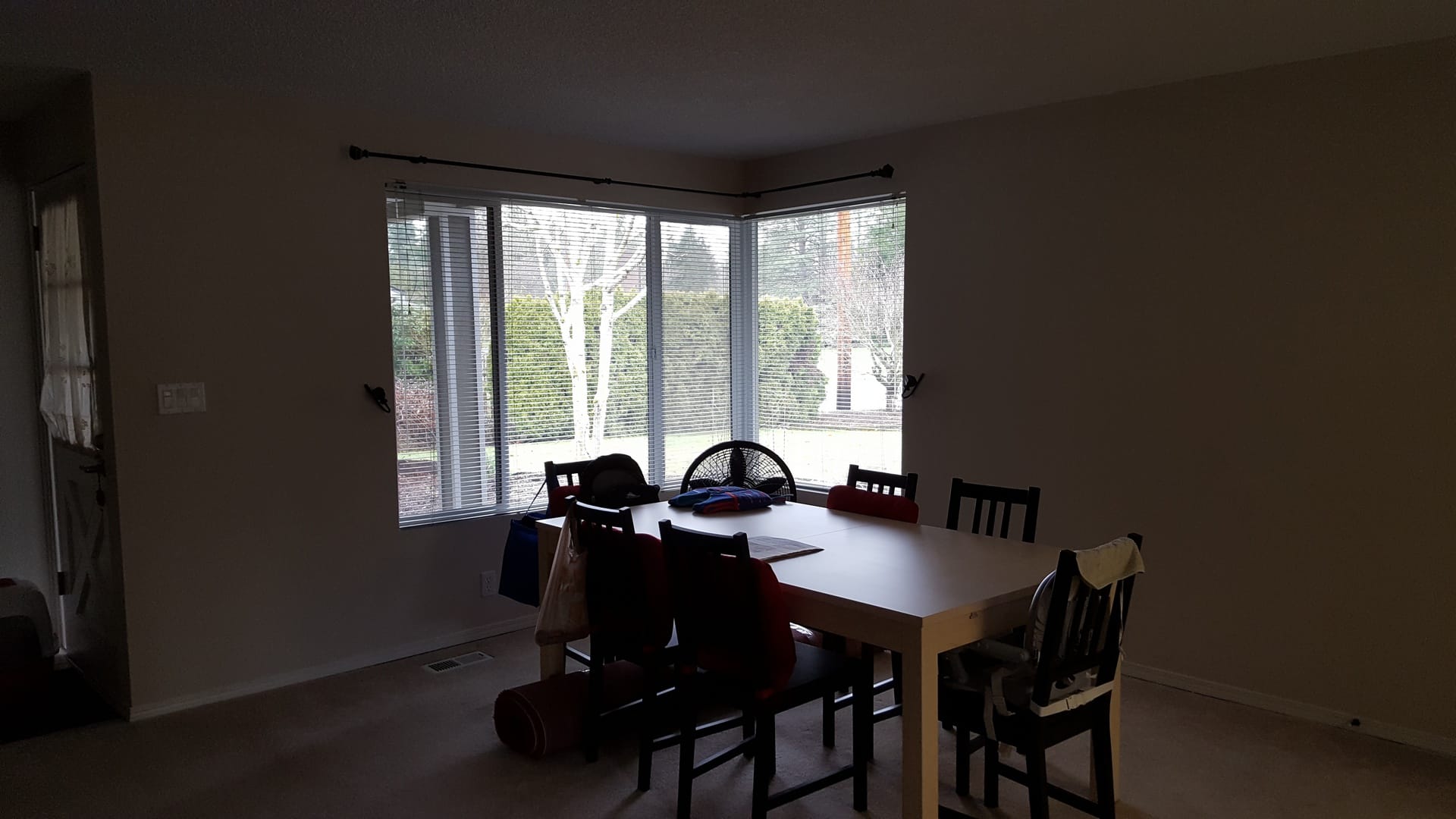Passons maintenant à l’intérieur, en passant par la porte d’entrée, on arrive sur la salle à manger :