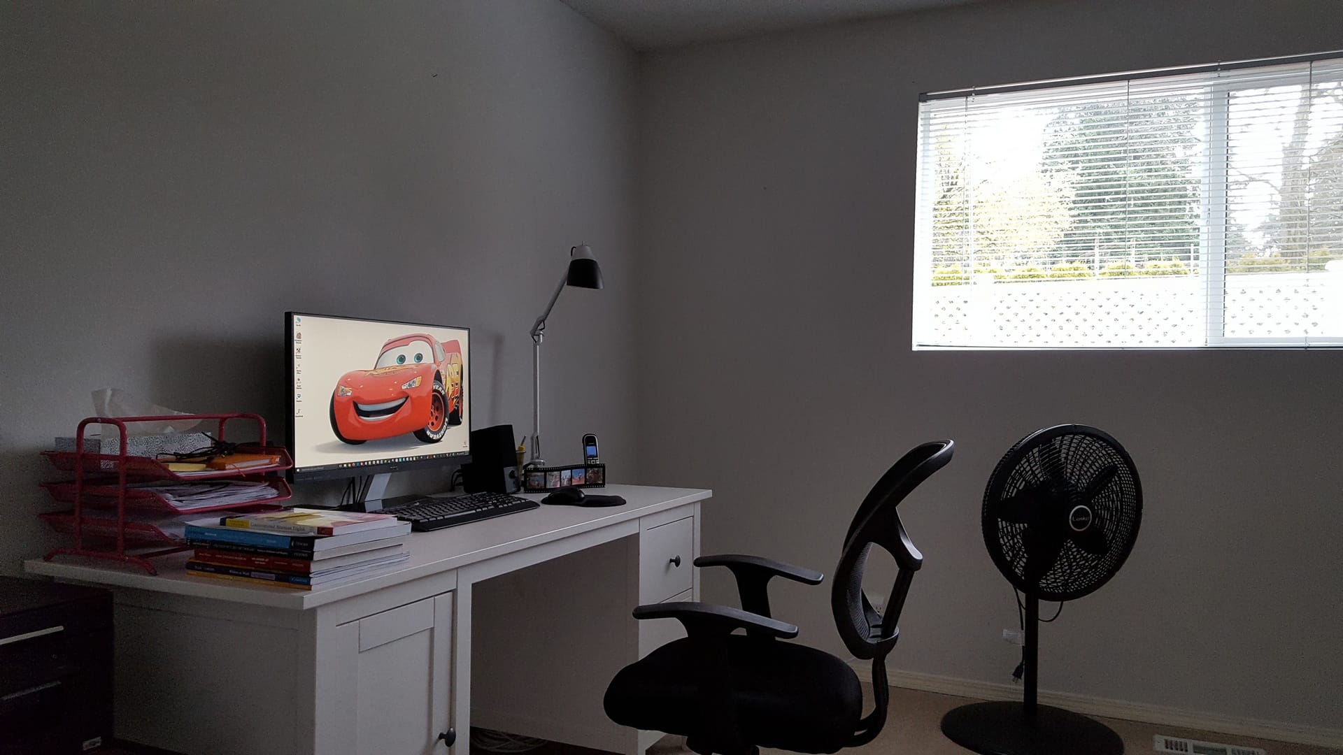 Nous nous servons de la première chambre comme bureau, et bientôt également pièce de bricolage, quand Rodolphe aura rapatrié ses affaires de modélisme.