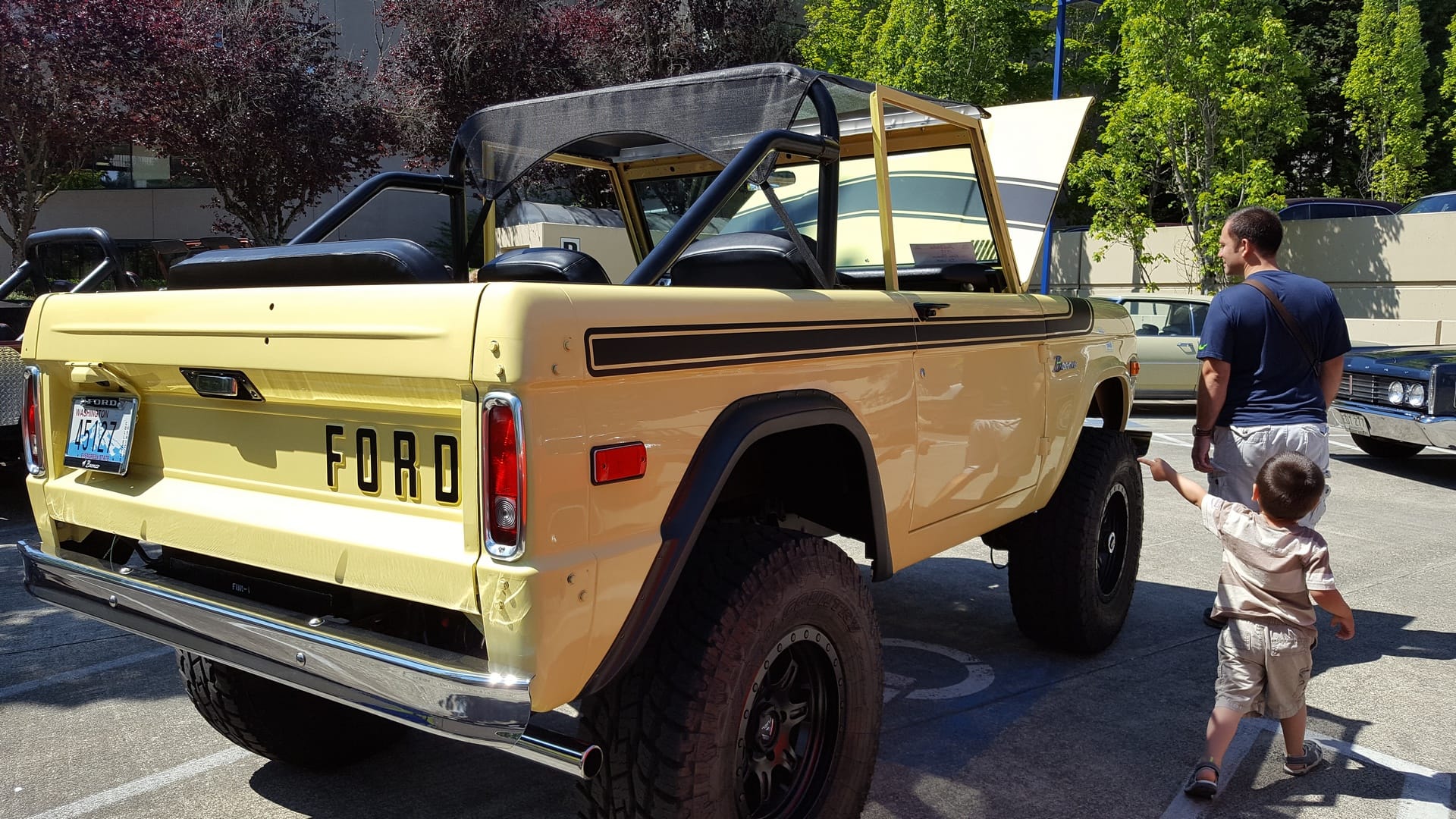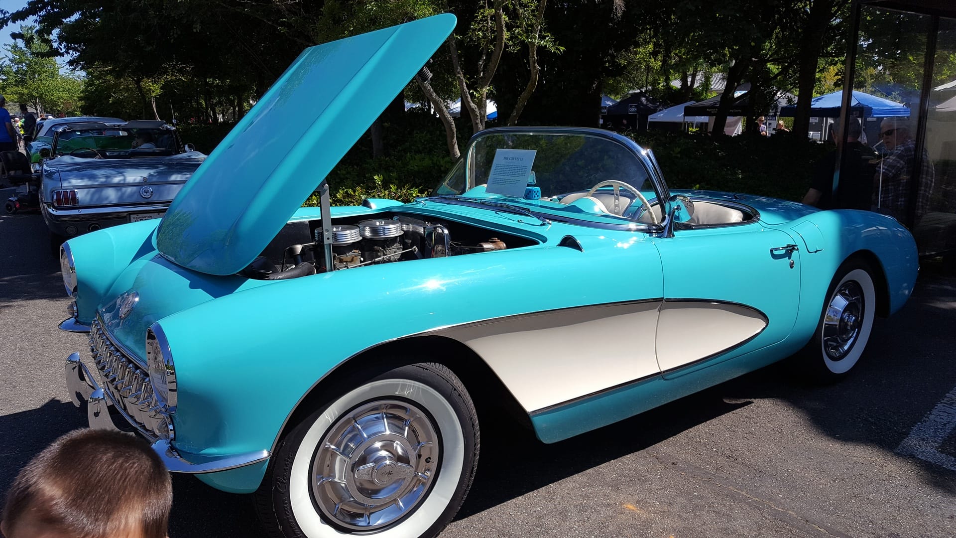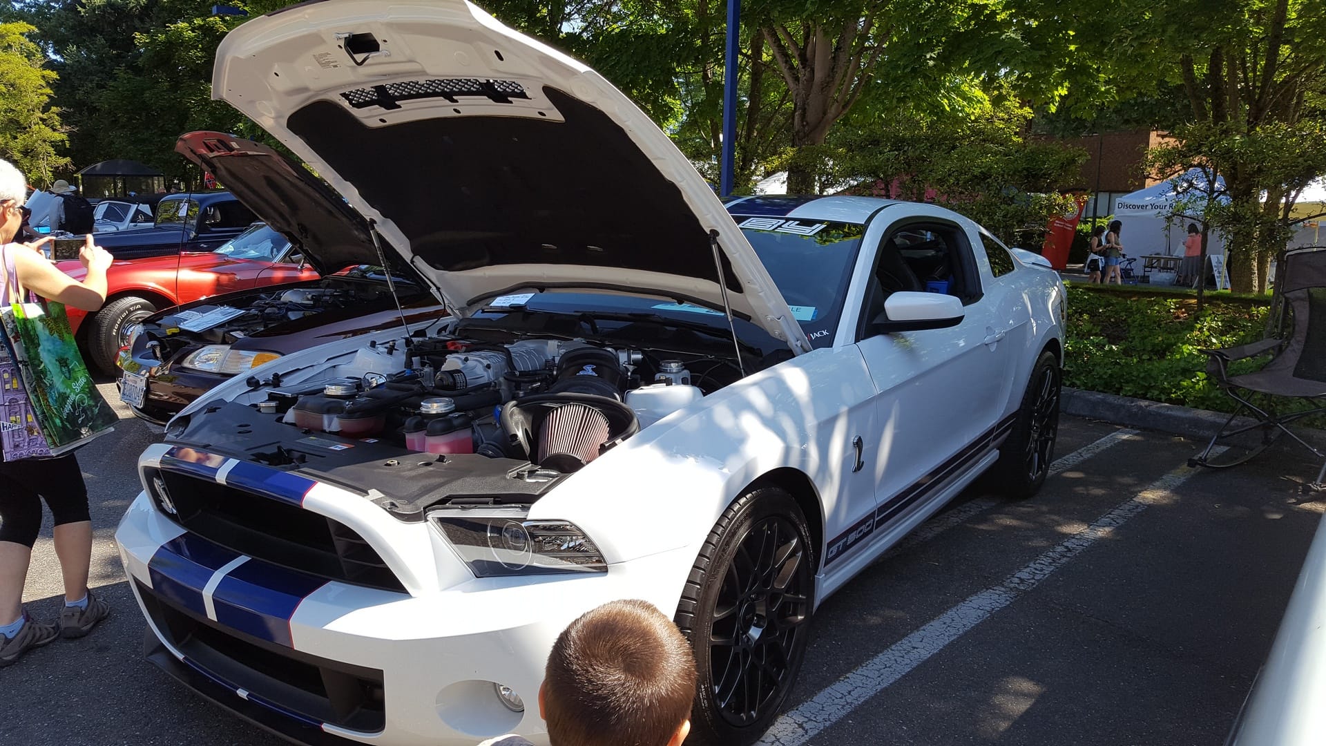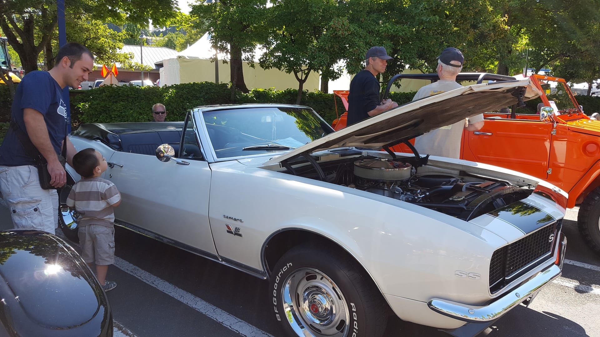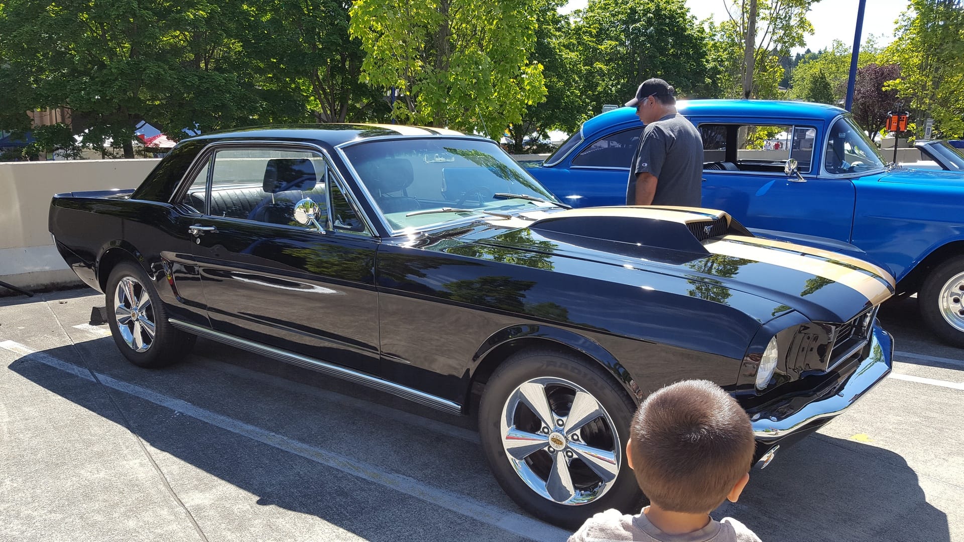 Après une heure intense d’entrainement, nous partons en direction de Mercer Island. C’est en fait le festival d’été, il y a plein de jeux pour les enfants, de kiosques de nourriture, de représentants des boutiques environnantes et une méga-exposition de voitures américaines plus ou moins récentes.
