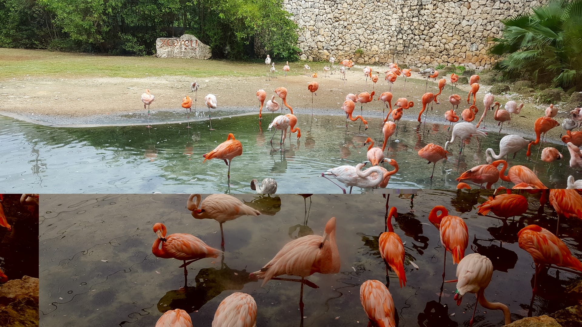 Nous poursuivons notre découverte du parc en passant par la partie “zoo” où on peut retrouver des flamants roses (encore) :