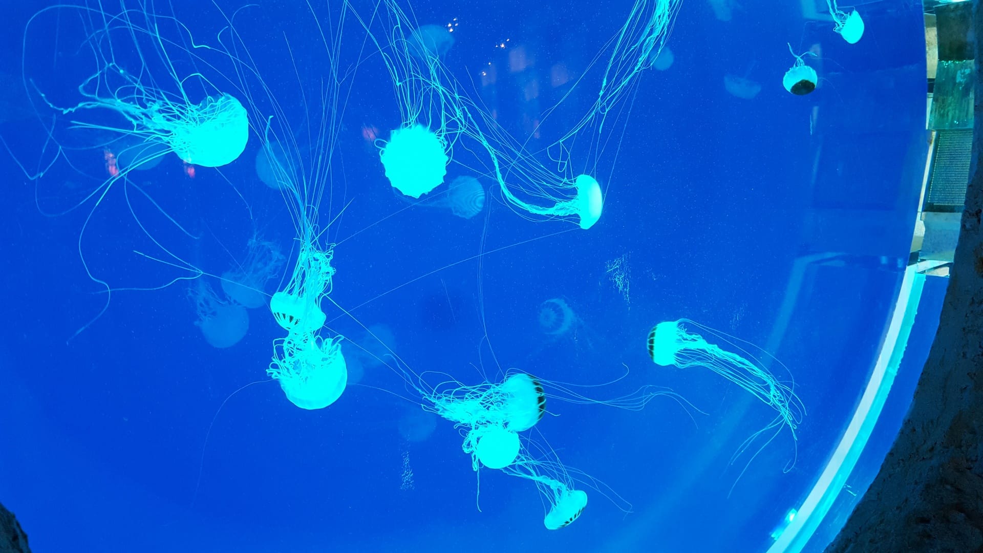 Après la partie terrestre du parc, nous passons à la partie aquatique. Là encore nous pouvons voir de plus près des espèces marines. Nous commençons par les méduses :