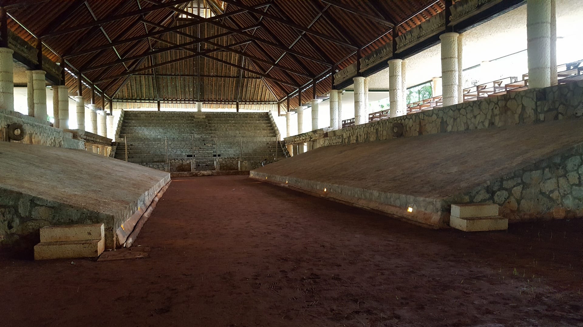 Parmi les traditions ancestrales, il y a le “Mayan Ball Game”. Un jeu de balle qui se jouait dans ce genre d’espace :