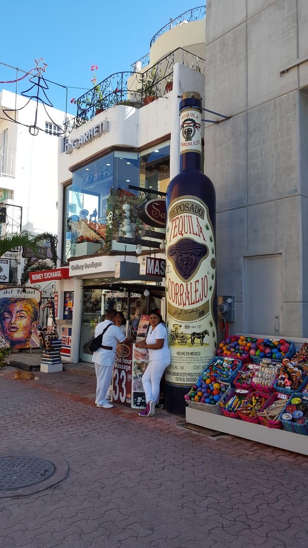 La rue continue avec des magasins vendant des spécialités locales, comme la fameuse Tequila :