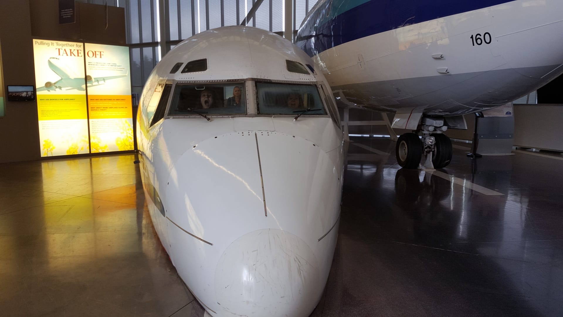 Les filles s’essaient au pilotage dans le cockpit… Pas sûre que je monterai à bord vu la tête qu’elles font !! Et vous ?!