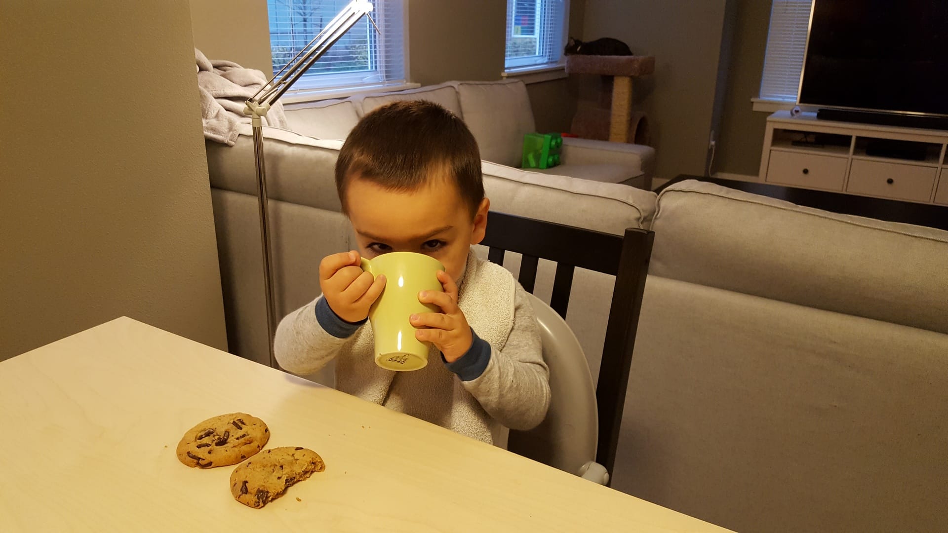 Entre 2 tartines pour les toasts et la surveillance de cuisson, nous ne prenons une petite pause avec les filles, discretos en cuisine :