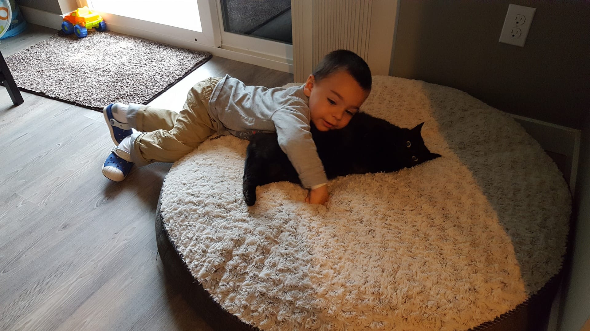 Là c’est le moment où elle sourit encore, car elle a encore son bras pour remuer !