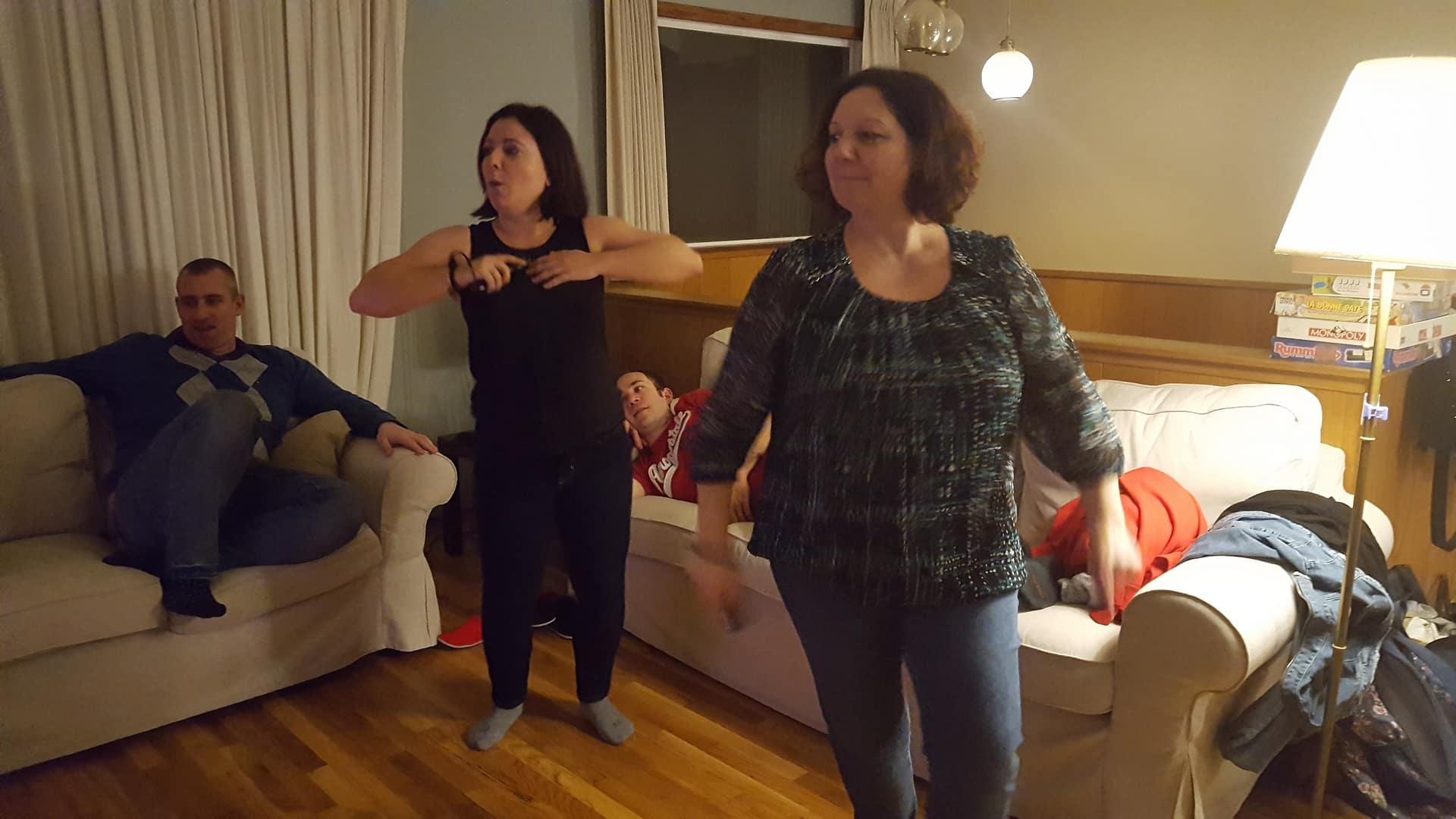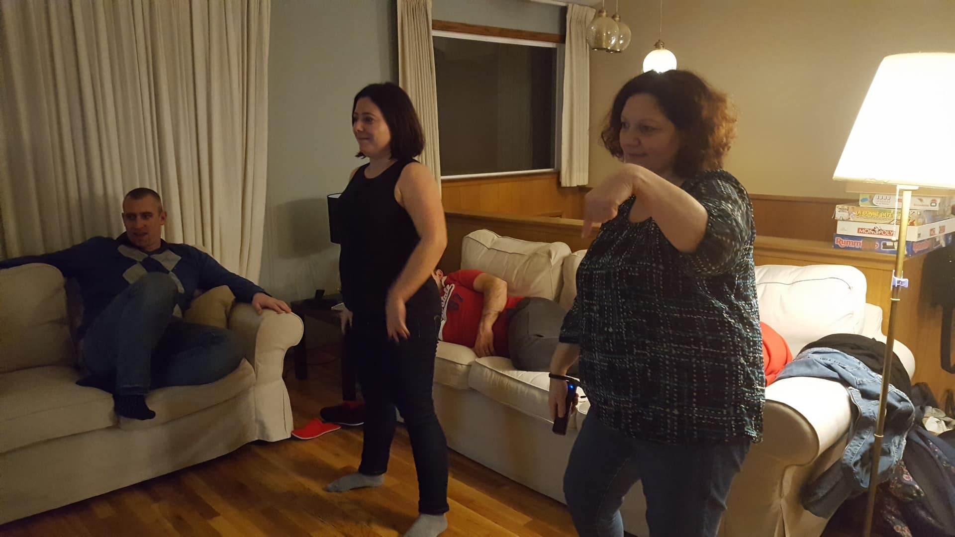 Pour faire couler tout ça, et faire un peu de place pour le fromage et les desserts, nous faisons une petite pause Wii. Manu et Valérie sont des tueuses à Just Dance.