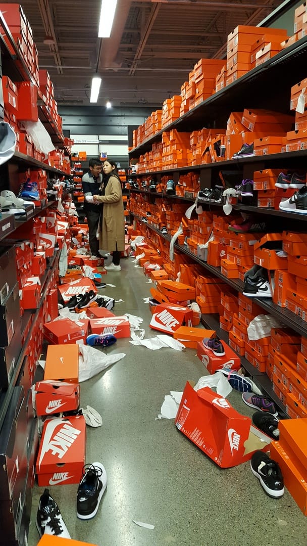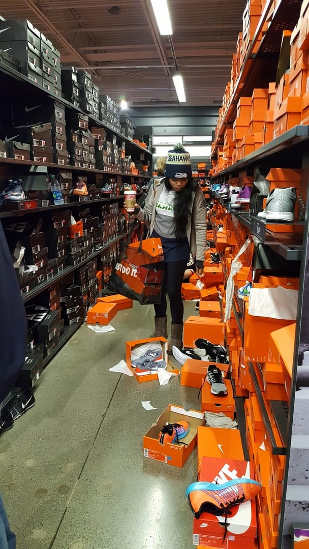 Nous sommes, heureusement, arrivés après le carnage chez Nike, mais quand on voit ce qu’il reste des rayons 1 heure après l’ouverture, on plaint ceux qui bossent là !