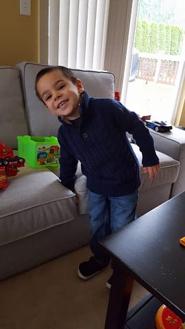 Oscar joue pendant que je commence les préparatifs, il est pas trop mignon avec son petit pull ?!