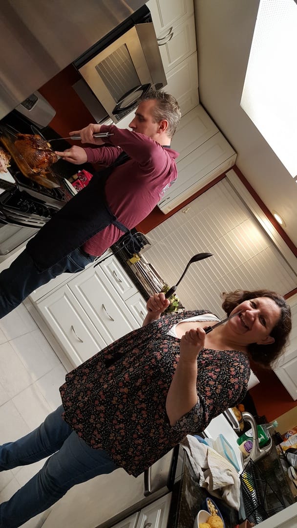 Cette année Thanksgiving se passe à la maison. Comme l’an dernier, on se retrouve en fin d’après-midi pour cuisiner ensemble avant d’attaquer un repas qui va durer quelques heures.