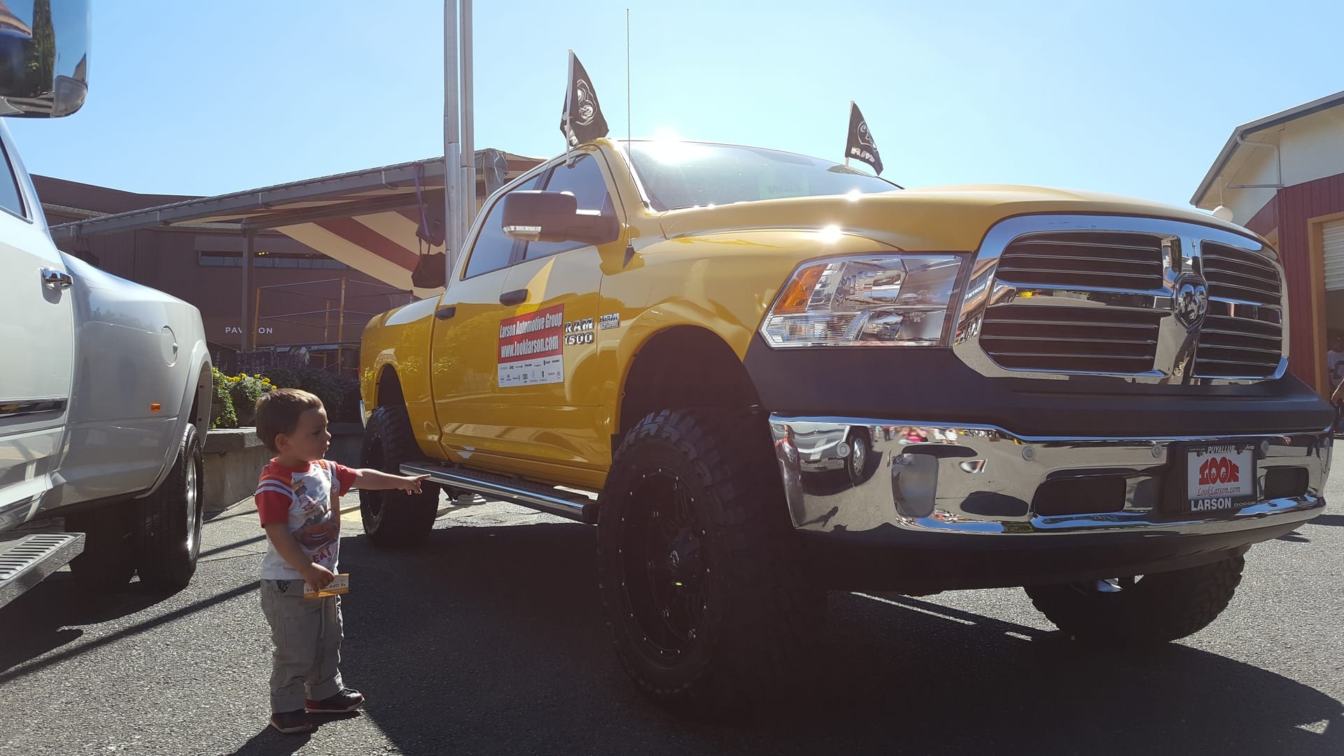 Entre tous ces stands, les marques et les sponsors font leur pub et surtout les marques de voiture. Oscar, déjà complètement américanisé, a choisi sa voiture :
